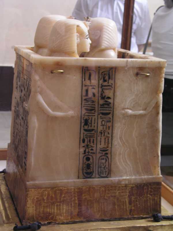 Tutankhamun's Tomb features the four heads of Isis, Neith, Selkis and Nephthys as stoppers for the different storage compartments.