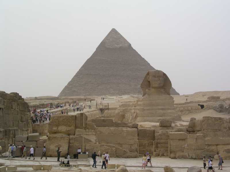 Pyramids of Cheops, Chephren and Mycerinus. The great Sphinx of Giza was close by and we were all amazed at the proximity of buildings of Cairo so close to such ancient