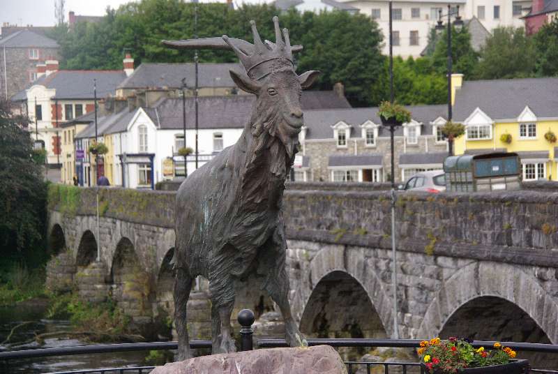 King Puck sits near the river at Killorglin, and is famous as in the time of Oliver Cromwell a group of goats were herded up but Puck