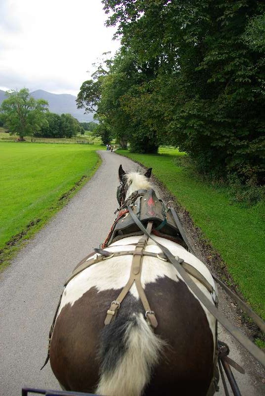 Killarney was lovely to drive into and as luck had it the sun was shining! Our Jaunting car was waiting for us and so straight onto it and off we went.