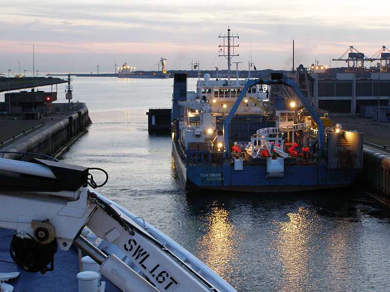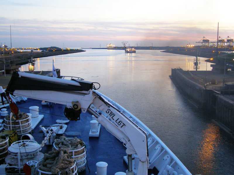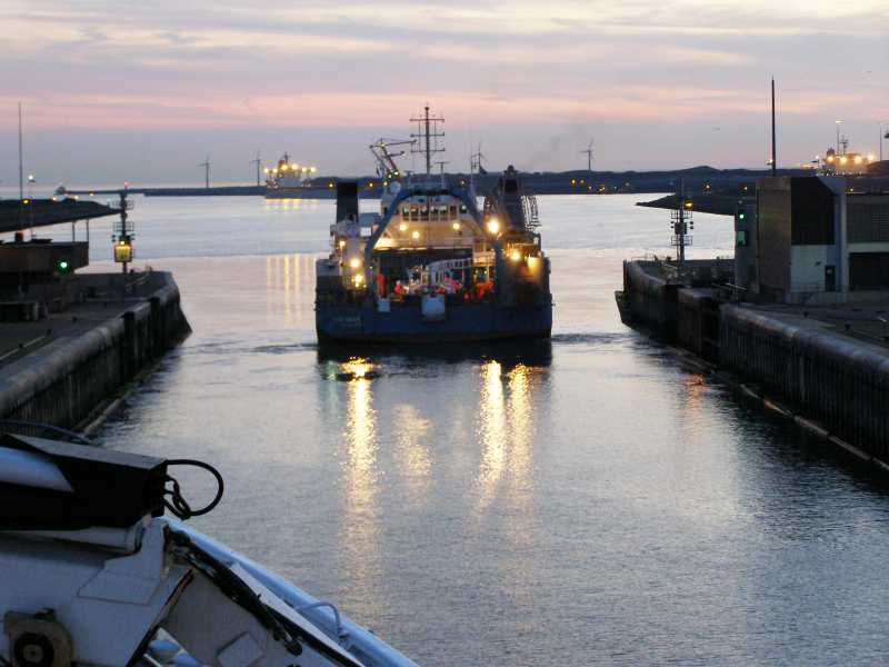 to equate. There is not much room in the lock and we were amazed at how close we were to the sides. After a considerable time we sailed out of the lock and headed for the North Sea.