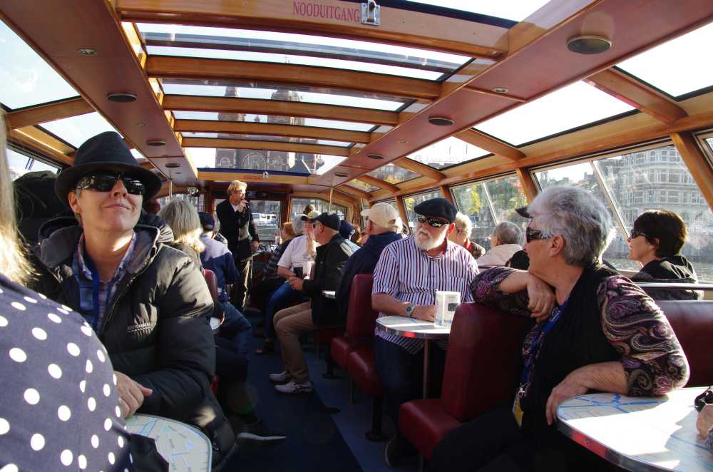 as our local guide was taking us on a canal cruise on a glass topped boat, to see the impressive waterside facades from the water. These canals
