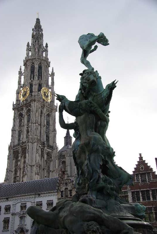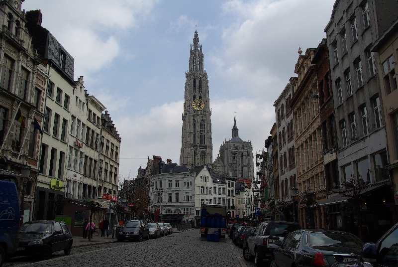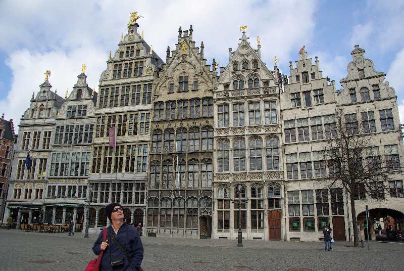 An early breakfast this morning before leaving hotel at 7.45am on the way to Amsterdam via Antwerpen, Belgium, for a lunch stop. Arriving in Antwerpen around lunch time we were surprised to see it was a little reminicent of Brussels. Lovely town with tall buildings mainly around what appeared to be a town square. Many statues and towers could be seen and even though it was cold we set off to explore the small streets around. Not a lot of people out here - just us and so it was great to walk the cobblestoned streets and look at the old, unique buildings.