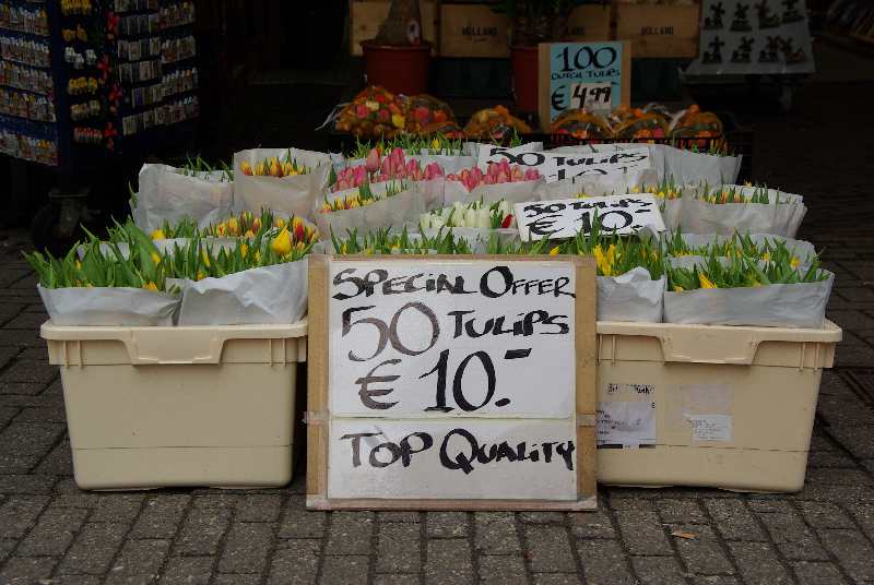 When we left the dock noticed our ship the "Marco Polo" had berthed next to us. We have had trips on it before and loved our cruises! The homes scattered along the canals were so interesting and people were everywhere just doing everyday things. We noticed lots of bike parks and bike rental stations as many people in Amsterdam ride bikes throughout the city. After a delightful cruise with lots of commentry by Kai, our "Sound of Music" Tour Director, we visited the small flower market in the city. The show of tulips were colourful, even though they were just beginning to bloom. The bulbs were everywhere and it was obvious that lots of Dutch people plant these for beautiful showings.