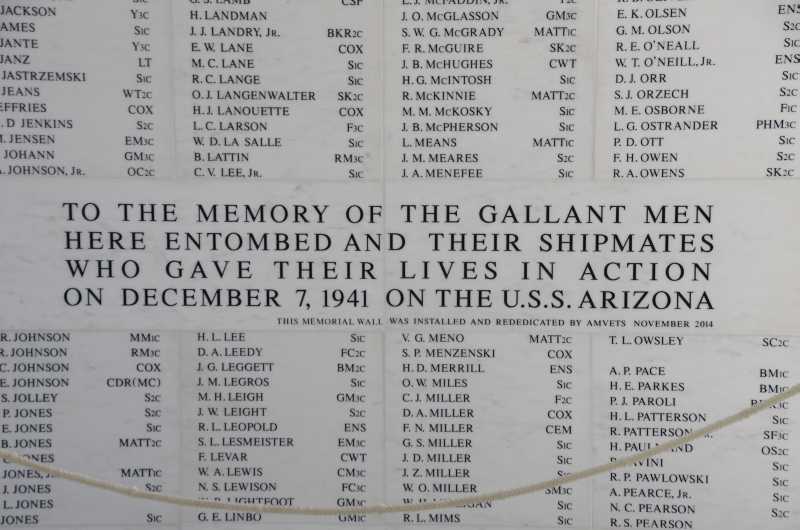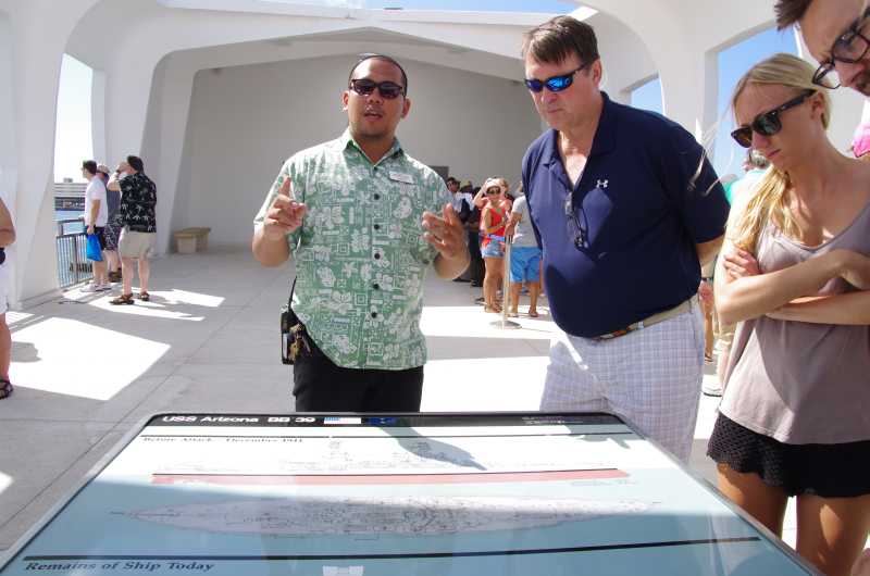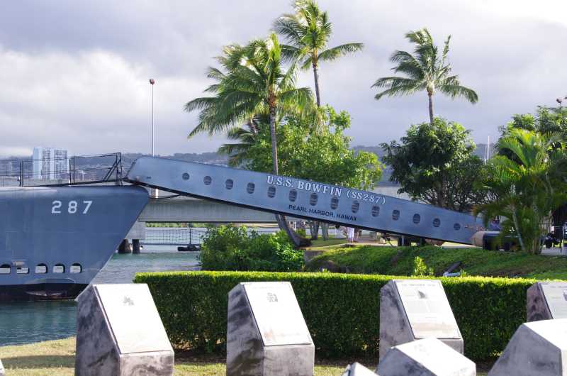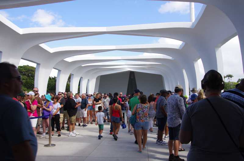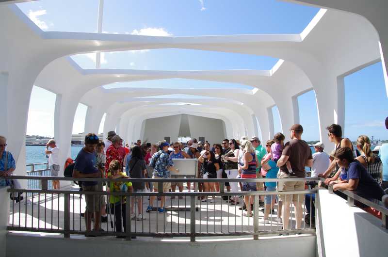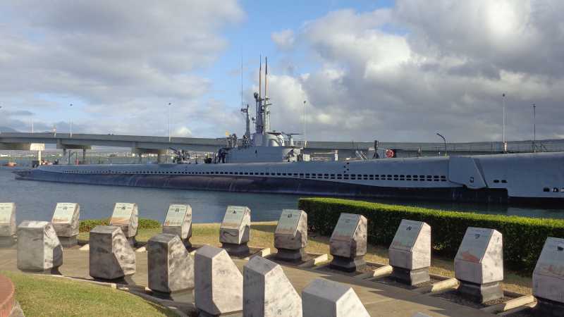 Pearl Harbour is a highlight for any tourist coming to Honolulu. The Pearl Harbour Experience is one not to miss and we booked our tour and left very early in the morning to make sure we had plenty of time. When we arrived at the Pearl Harbour Visitor Centre, it was obvious that the day was going to be very special. Entering the park area we could see The Remembrance Circle, The Contemplation Circle and various relics such as the USS Arizona Anchor. The USS Bowfin Submarine was to our right and visitors are welcome to explore that. Going along the pathways we came across The Pearl Harbour Memorial Theatres where a 23 minute film shows the history of the attack. Nearby is The Tree of Life as a memorial to all those who perished in this terrible event. Headsets are available to hear stories and tales of the attack on Pearl Harbour and that gives a bigger insight into the history of this most terrible event. After the theatre, it is time to board the Navy craft and go the shortish distance to The USS Arizona Memorial that is so very moving and gives people the opportunity to reflect on how devastating the Pearl Harbour Attack was. Seeing the parts of the USS Arizona under the water still crying tears of oil does seem to make war and the loss of so many soldiers, sailors and airmen so very real and cements this in history for the rest of time. The pictures tell the story ......