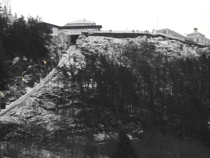 the buildings around and we spotted the funicular railway that lead to the top of the mountain so we bought tickets and up we went to Mt Floyen, where the most fabulous views
