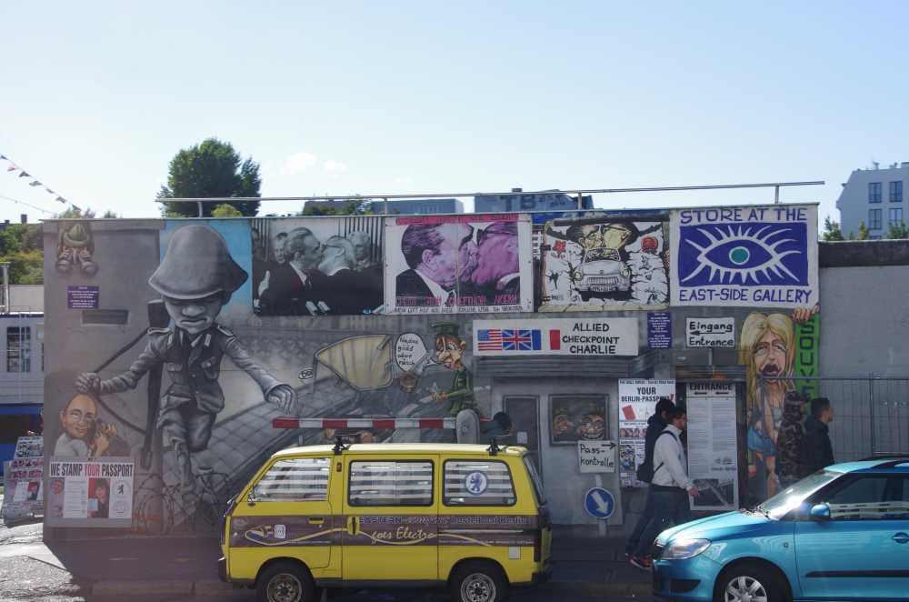 As we motored along the freeways to Berlin, Matej put on videos that showed some of the history of past events and times during the war in Berlin. They were very interesting and gave a background to some of the things we would see today. On arrival to Berlin we did a drive around to see some of the sights and history of this city. We drove past the East Side Gallery which depicts messages of peace and harmony from artists all over the world. It is the longest remaining section of the Berlin Wall, we moved along to visit the Brandenburg Gate, a structure which pays tribute to turbulent times and peaceful ends. The statue of Quadriga with her 4 horses stands high above the gate and represents victory. A very moving place to visit and not very far away is The Holocaust Memorial, a tribute to 6 million Jews killed in wartime and consists of 2,711 dark grey slabs as a point of Remembrance. There are original bricks on the road depicting where the Wall was during turbulent times and plaques to read of the history. The Berlin Wall was a barrier that divided Berlin form 1961 -1989 and kept people from jobs and opportunity in the west until it was taken down in 1989. Checkpoint Charlie was another place of interest that we explored, as it was the only place the foreign visitors could cross from West to East during the cold War.