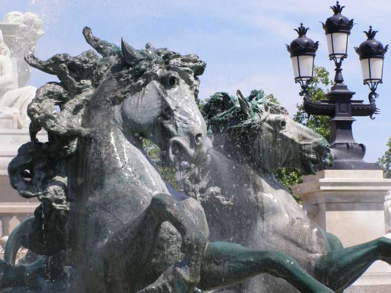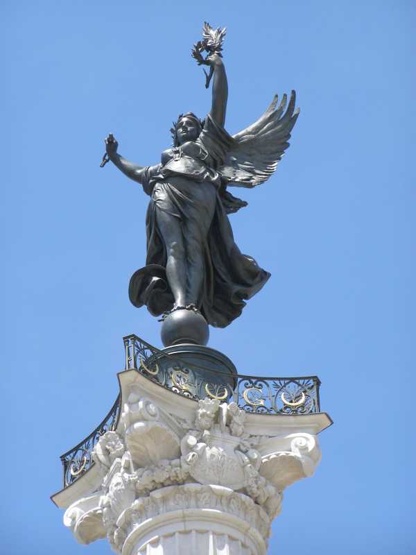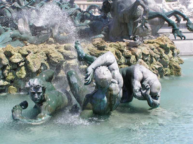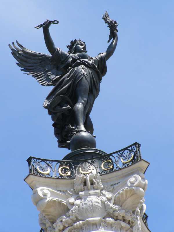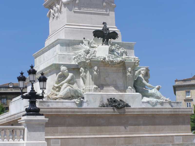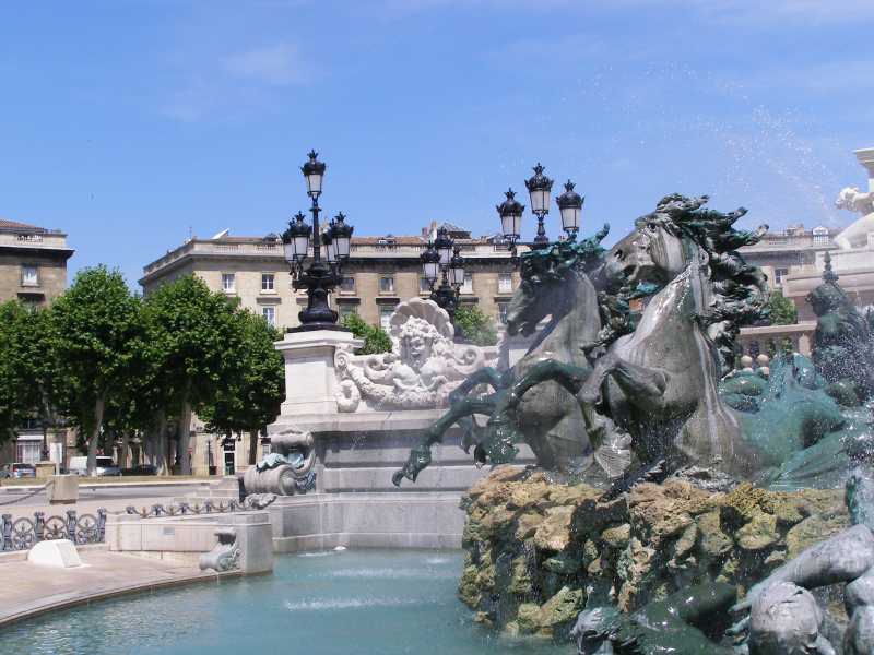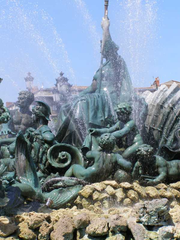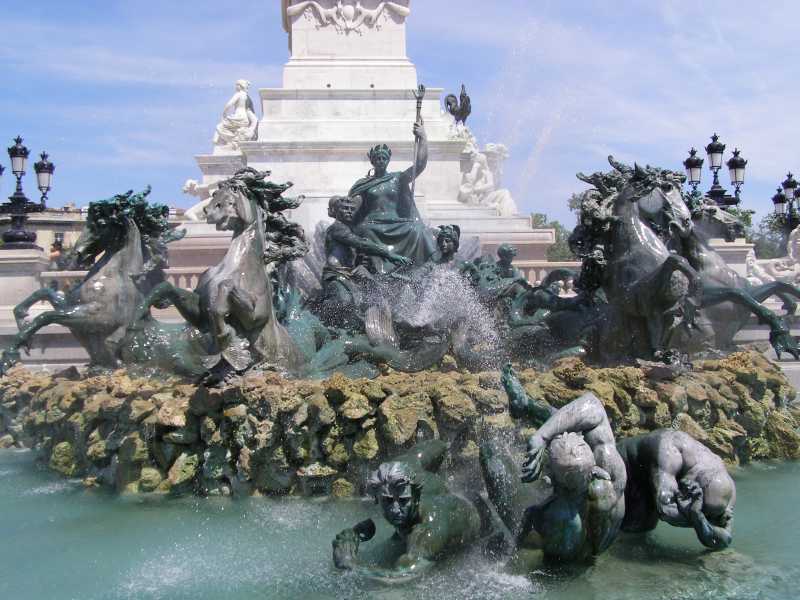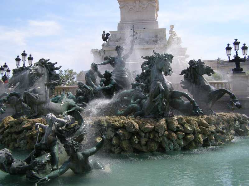 Off to the Esplanade des Quinconces which is Bordeaux's largest square. This overlooks the Garonne River and has two statues representing Commerce and Navigation at the entrance. There is also the Monument aux Girondins. At the foot of the Monument are two beautiful fountains with statues representing the triumph of Concord, Fraternity, Abundance and Happiness, Labour, Security, Strength and the Republic while lies, Vice and Ignorance are thrown to the ground trampled underneath the hooves of sea horses.