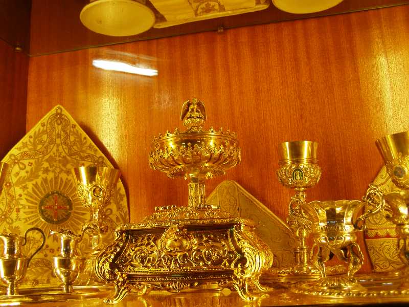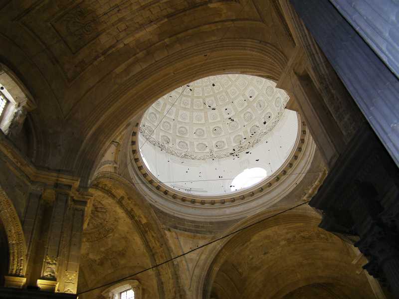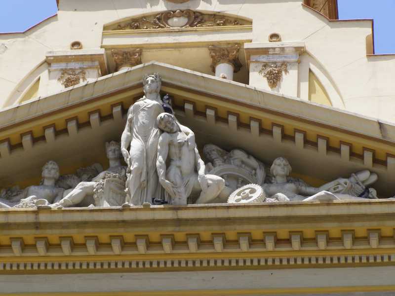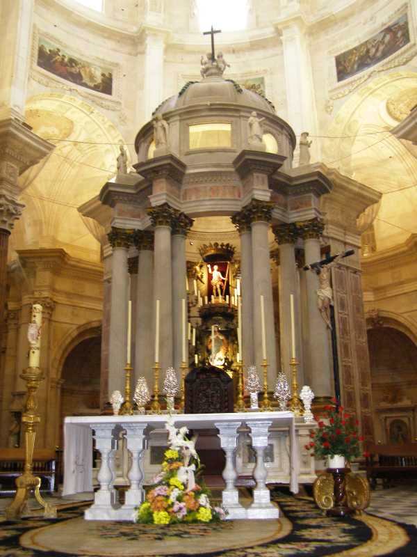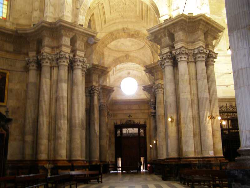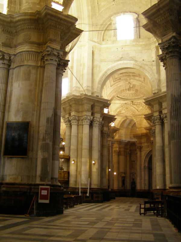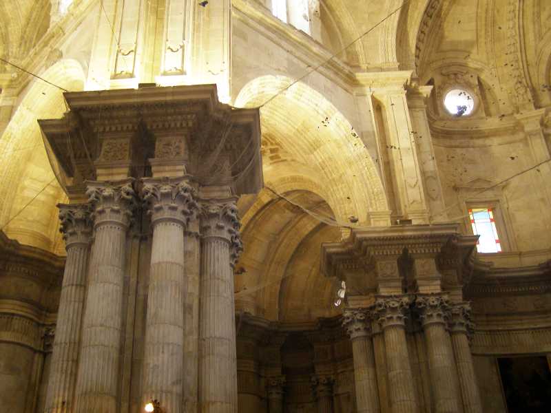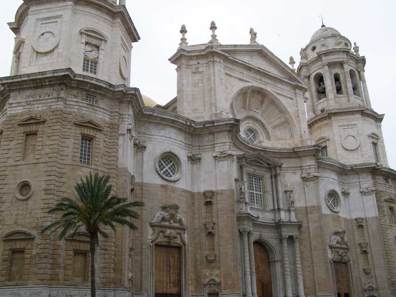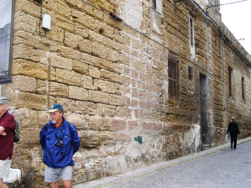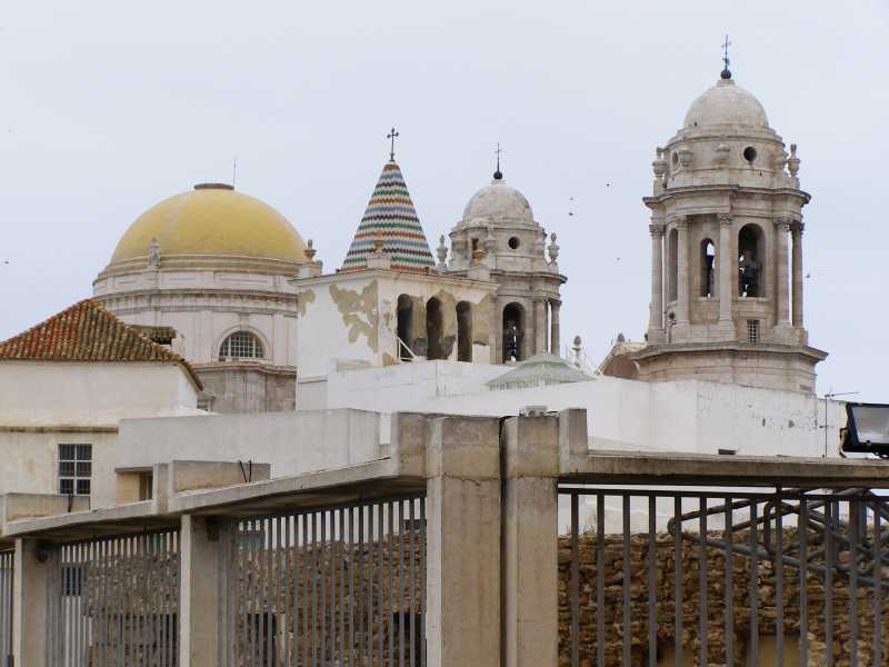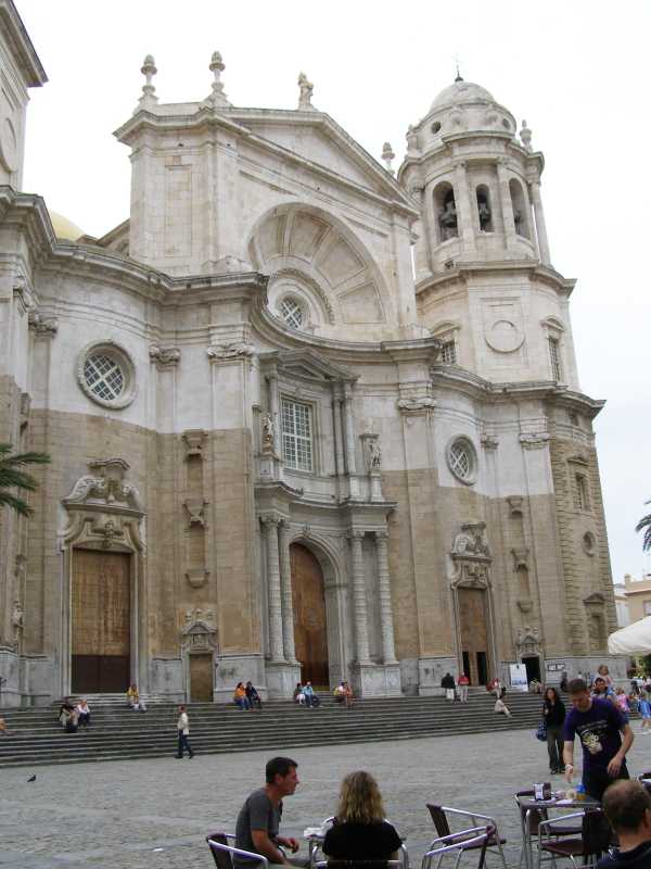 Well, here we are in Cadiz today and we walked to the town center past mosaics on the walls and some realistic bronze statues. Some cannons went off in the distance to mark the time and hundreds of birds flew out from the church roofs nearby. There was lots of stonework on the buildings and there was a site being excavated that in ancient times was an auditorium and theatre complex. Once in the town square we discovered a beautiful cathedral that had a unique organ and many statues and gold artifacts around. Underneath there was an incredible crypt area that had a circular ceiling that echoed voices and it all seemed quite eerie but very moving.