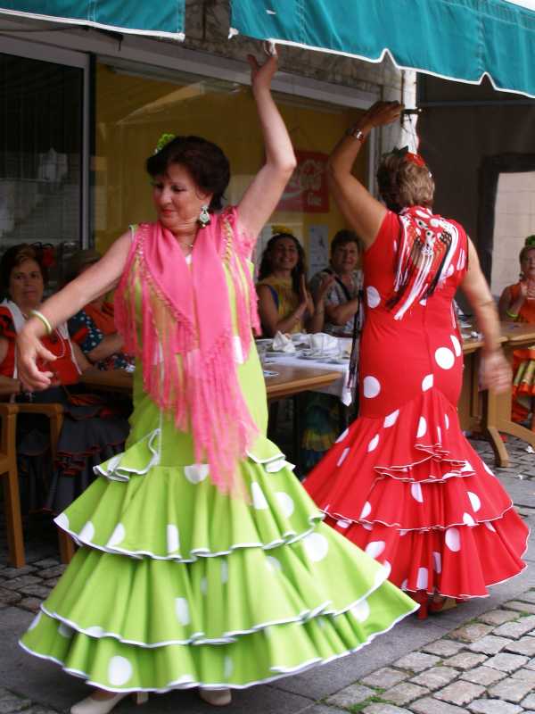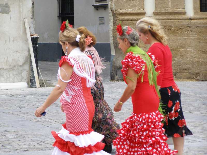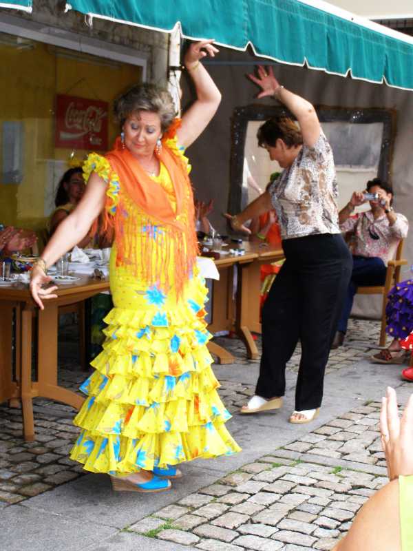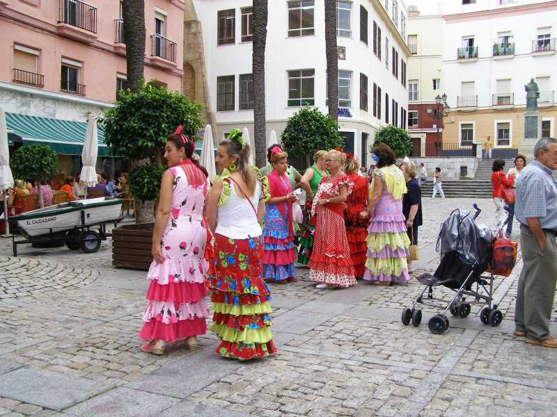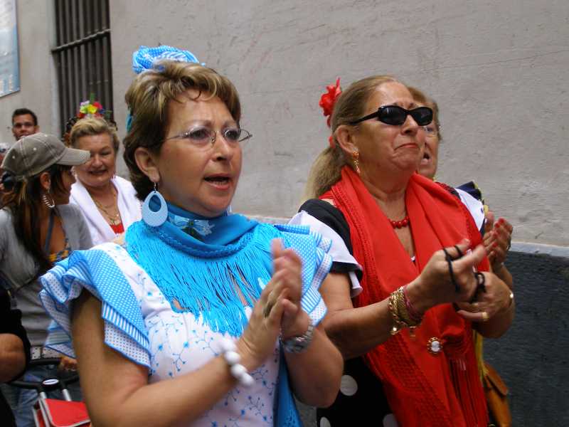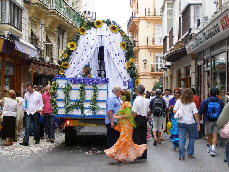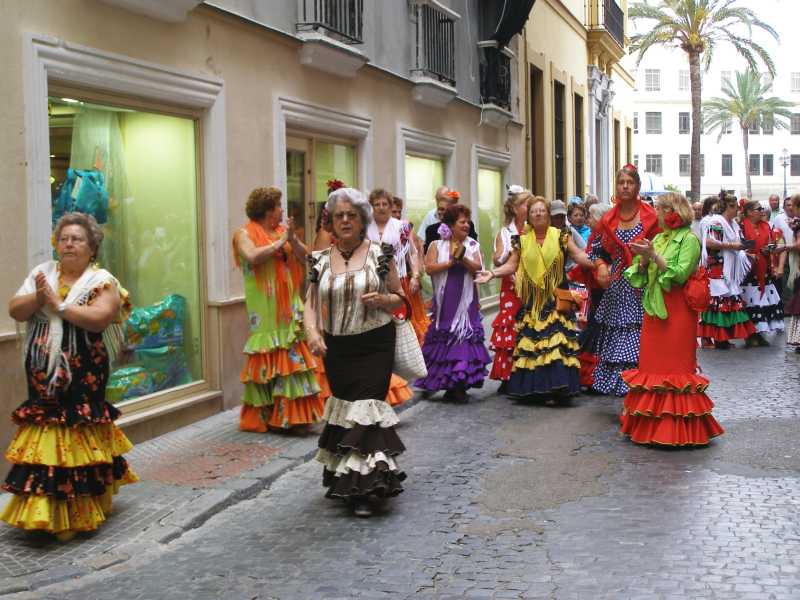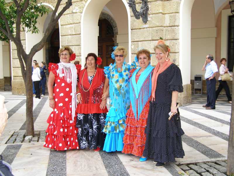What a lucky day for us as we stumbled upon a festival day here in Cadiz! Celebrations, a float procession, singing and dancing and what more could we want. It was very exciting and entertaining with everyone being dressed in national costume for this special day. It appeared to be a day for women to celebrate but we couldn't find out any more just enjoyed the atmosphere. The ladies in the pictures here just sat around, began clapping and two would get up at a time and dance! Wonderful!