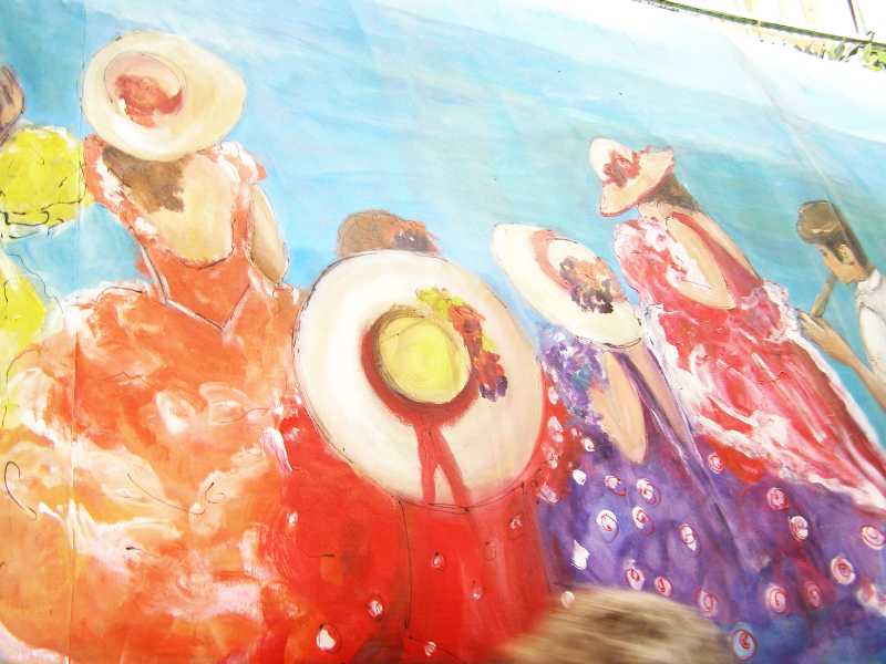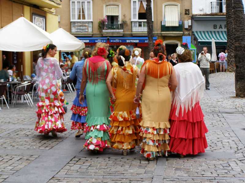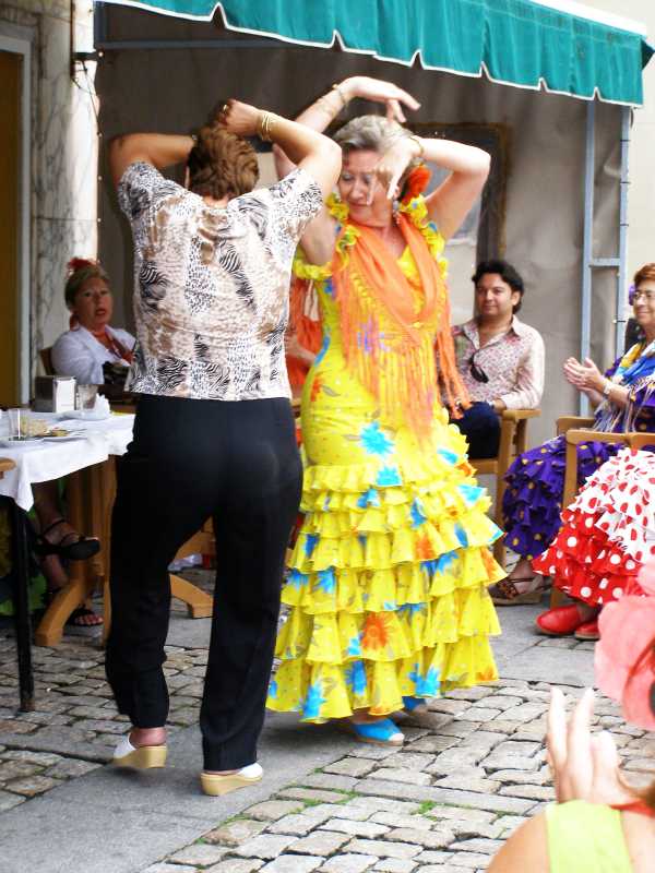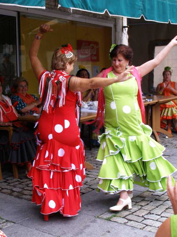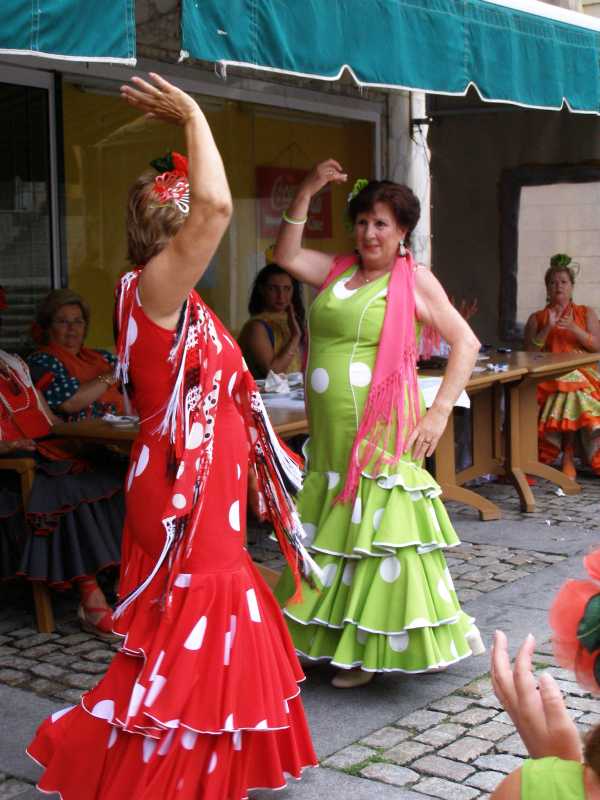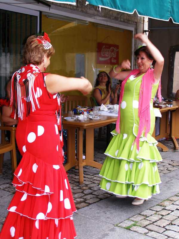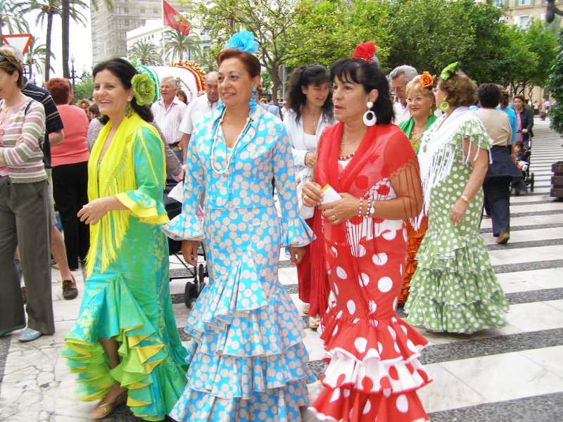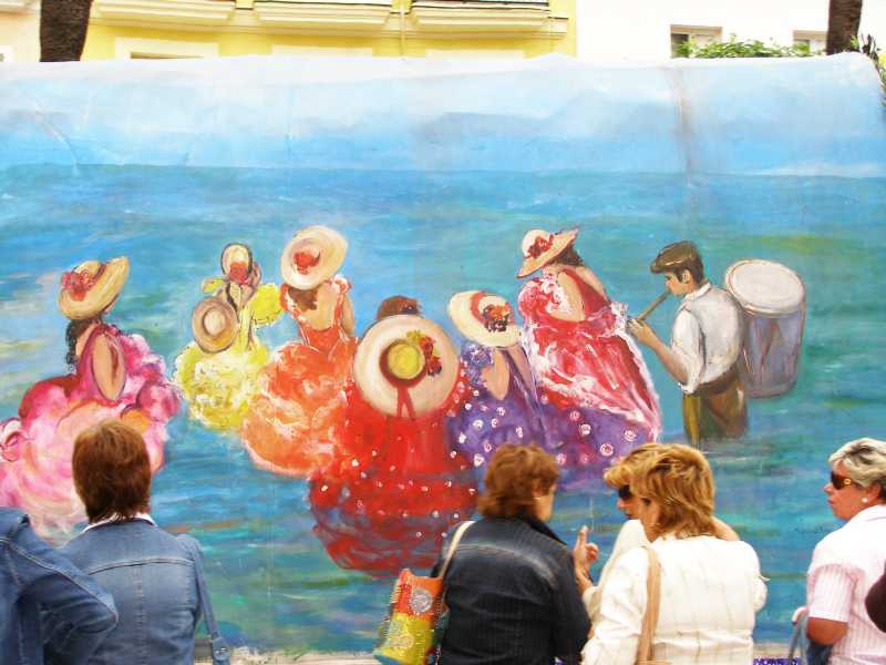 What a lucky day for us as we stumbled upon a festival day here in Cadiz! Celebrations, a float procession, singing and dancing and what more could we want. It was very exciting and entertaining with everyone being dressed in national costume for this special day. It appeared to be a day for women to celebrate but we couldn't find out any more just enjoyed the atmosphere. The ladies in the pictures here just sat around, began clapping and two would get up at a time and dance! Wonderful!