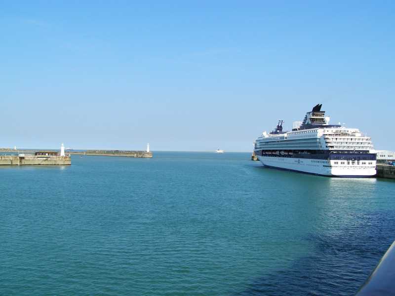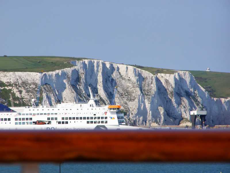 Well, time once again to leave and this sail out is spectacular as we get to see the White Cliffs of Dover and it's quite a clear day.