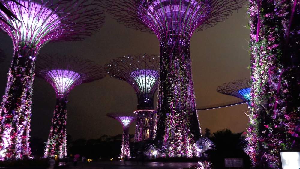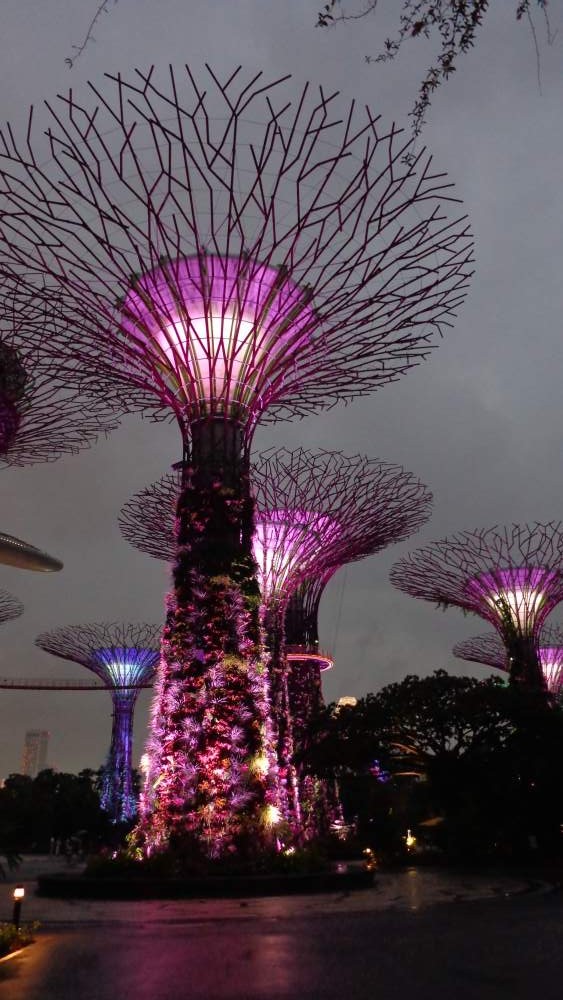 That evening the skies began to look ominous but we decided we wanted to see The Garden Rapsody, which is on every night for visitors to enjoy. The Supertrees are lit up and the music that accompanies it is just breathtaking. Colours changing and just the ambience of the trees make sure that the visitors have a fantastic sight. The show is on twice a night and unfortunately for us it was raining,lots of lightning and still the show went on!!