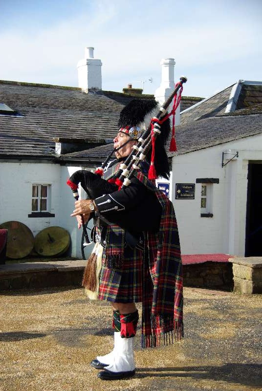 only reached the man's knees so that he could run easily through the paddocks and the grass. In their sock was a knife called a sgian dubh and it was placed here