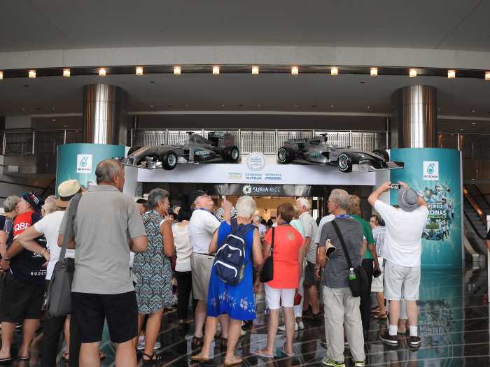 Another lovely day ahead here in Kuala Lumpur. We came into the city on our coach and saw many housing settlements along the way. The roads were very good and the journey was reasonably quick so that was great. We got off at the Suria KLCC Shopping Centre near Petronas Towers. What an amazing Mall this was, very big, many shops and restaurants and very beautiful to see the ceilings and the staircases.