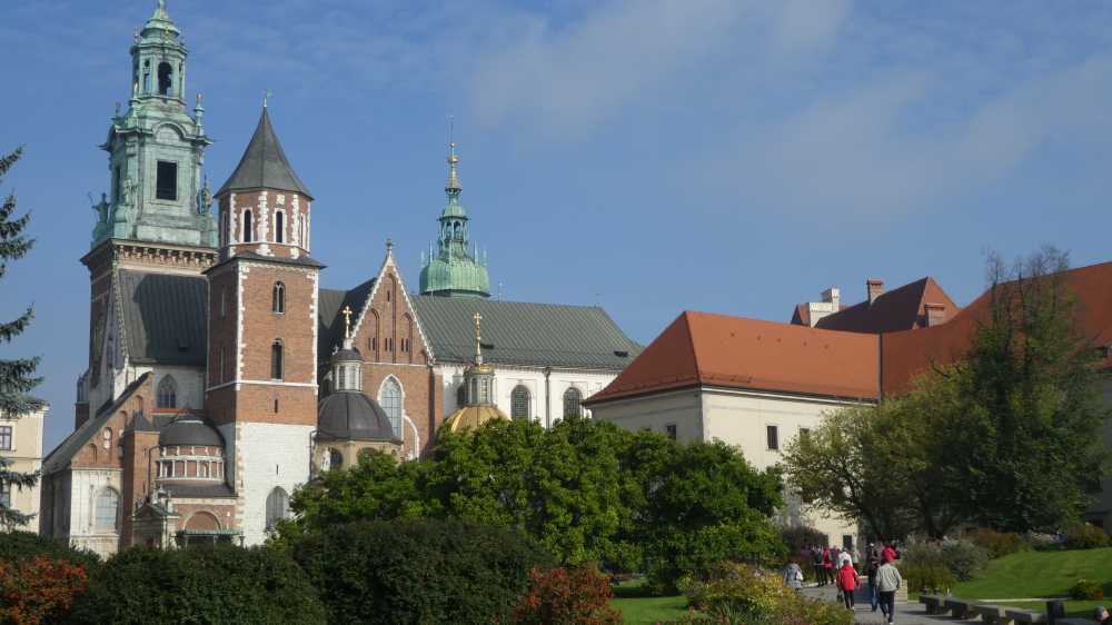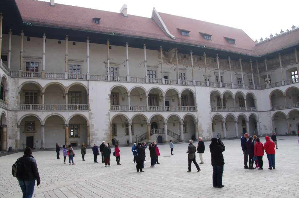 towards Wawel Hill. Here we saw the Wawel Cathedral, important as Kings were buried and crowned here. St Marys Church with a beautiful
