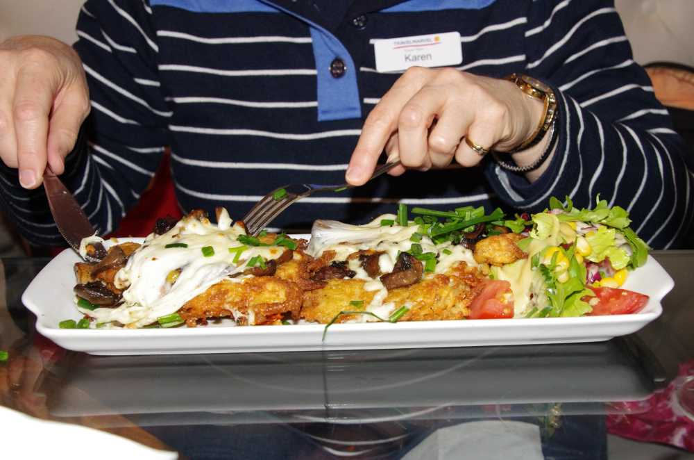 ready for us. As we sat down, the music began and after dinner the dancers began their show and much to our delight managed to encourage some of us to get up