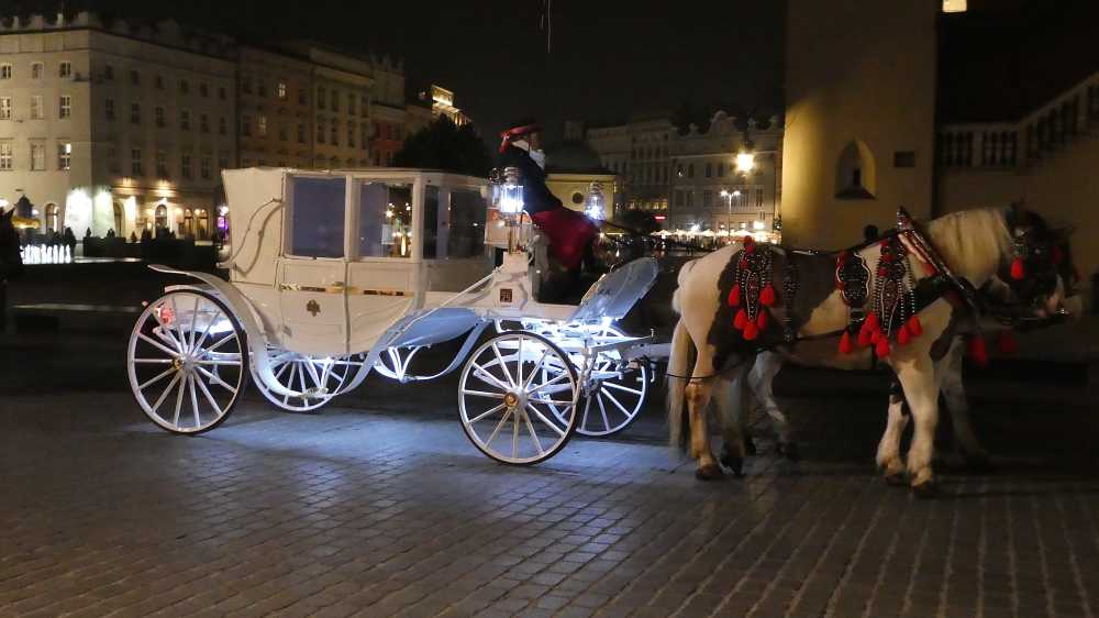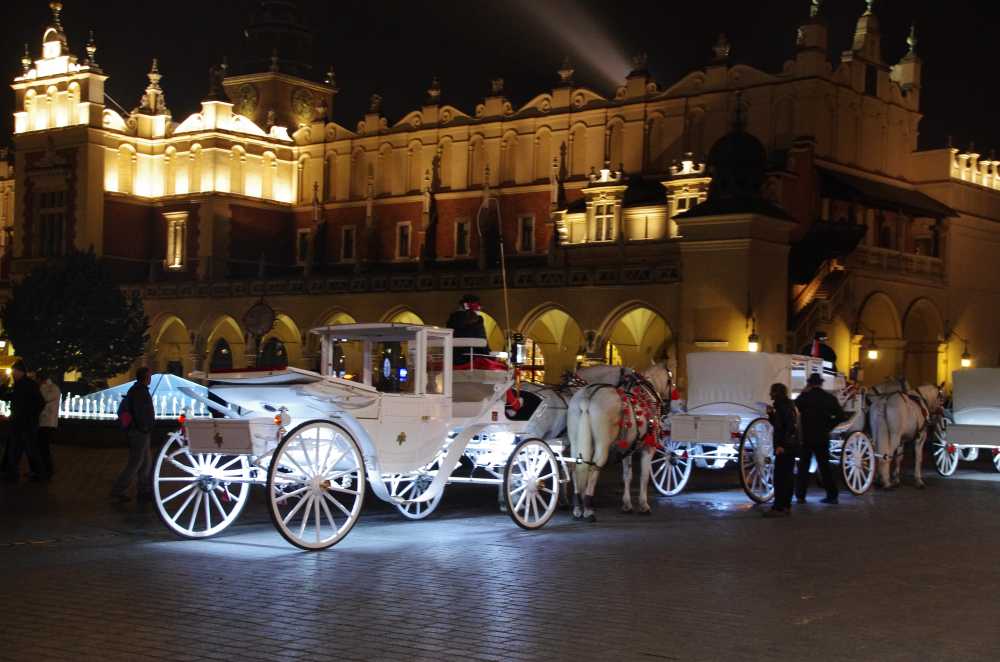 many times to see the beautiful lights of Krakow and how the buildings shon at night. We loved the horse drawn carriages and atmosphere they created, very