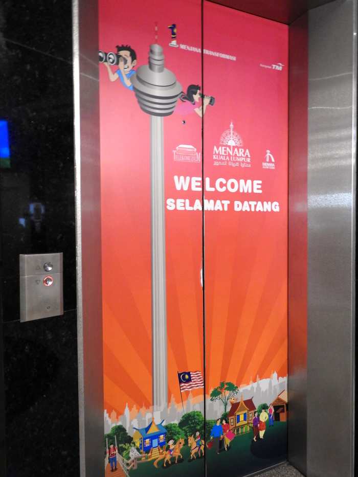 Today we are doing a ship excursion the Melting Pot of Kuala Lumpur. It was an early start, and very soon after a quick departure from Ovation we were on our coach bound for KL. The journey in was very interesting as we saw lots of residential units scattered around the lush countryside. The roads and overpasses were amazing and the toll gates were very efficient and appeared not overly expensive. On the way our driver explained that there was a marathon on in the city that had about 30,000 competitors so he would do his best to avoid those roads. He did an excellent job as we missed them all and so our first stop was the Sky Tower and we appeared to be the first ones there.