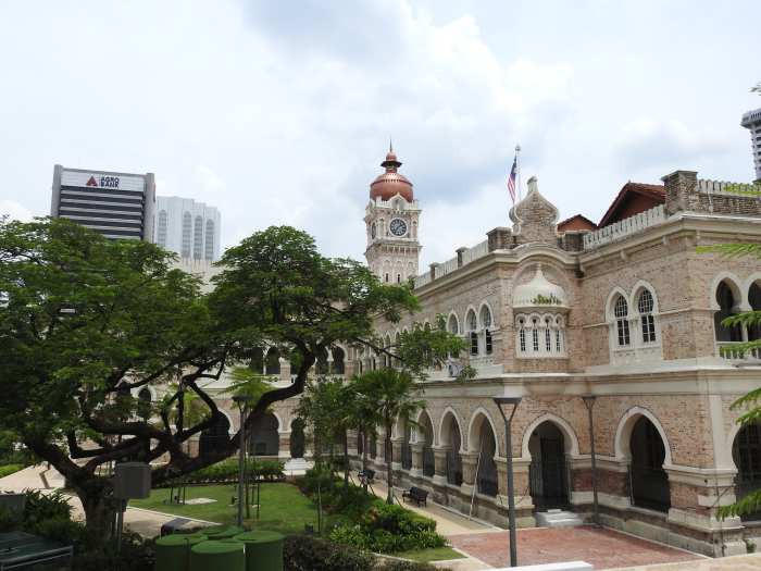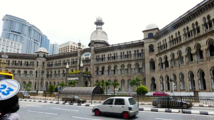 The next point of call was to see The National Mosque and The Railway Station. The Station itself is not used but stands as an example of Colonial Architecture at its best. It was built in 1910 and has the Administration Office opposite and both buildings are of National importance. Nearby by is The National Mosque that can house up to 15,000 people and has surrounding it approximately 48 smaller domes. There are open areas within the grounds and the river flows through it and much to our delight we spotted something swimming in it but not sure what it was! All too soon again, time to return to the ship and continue our sailing to Singapore. Wonderful day and lots of memories from KL.