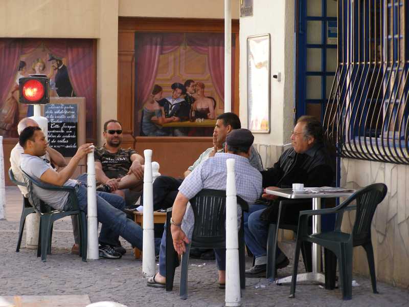 gone by and there are even a couple of statues, in bronze, sitting at a table in the street. Of course we had to join them