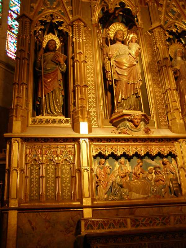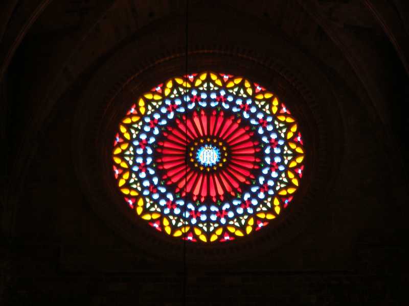This church is famous for its Rose windows with one being 12m across and studded with 1,236 pieces of glass. The interior has very high ceilings, lots of gold statues and seating for hundreds of people.