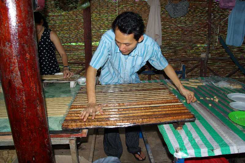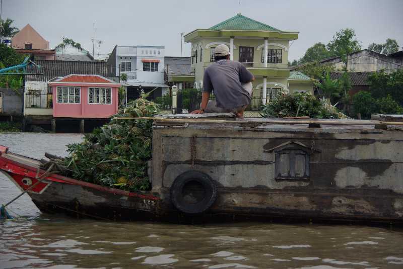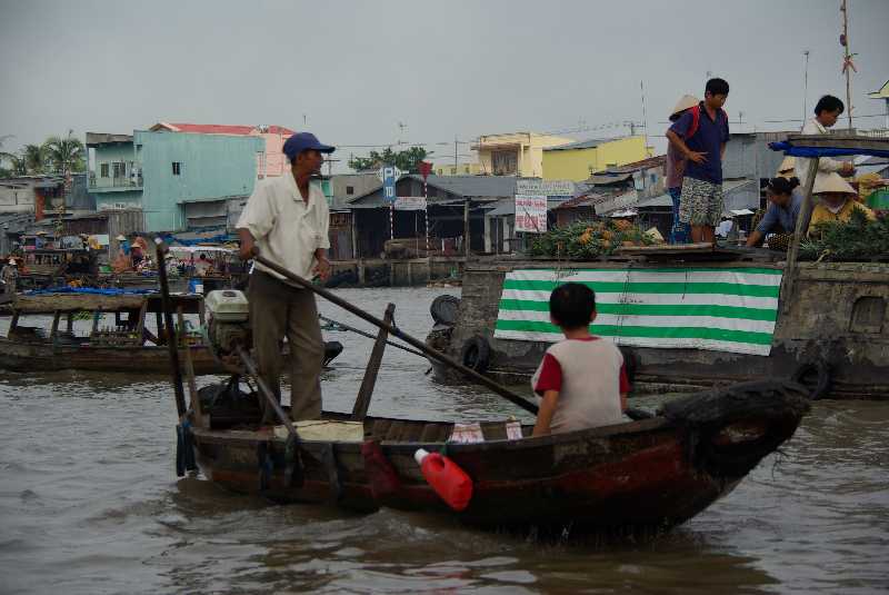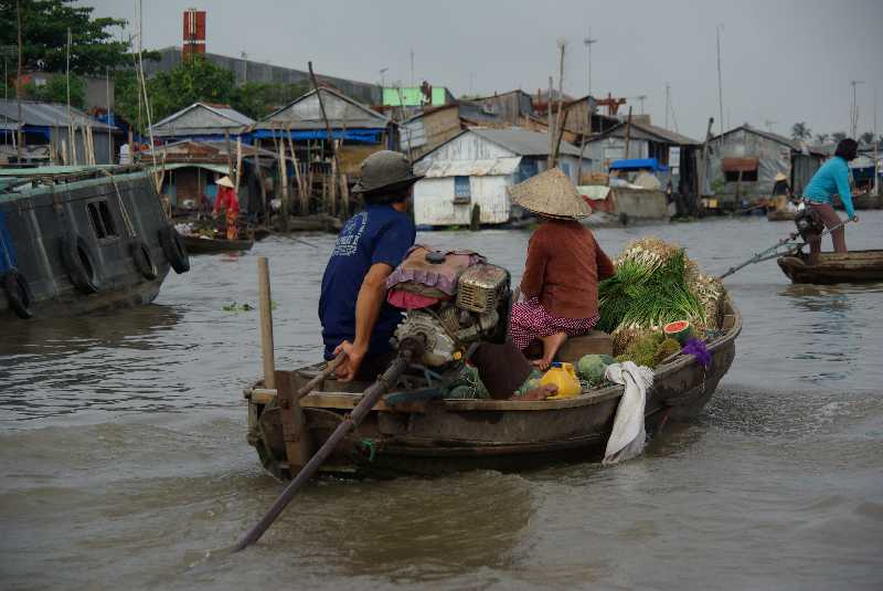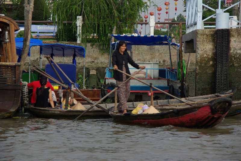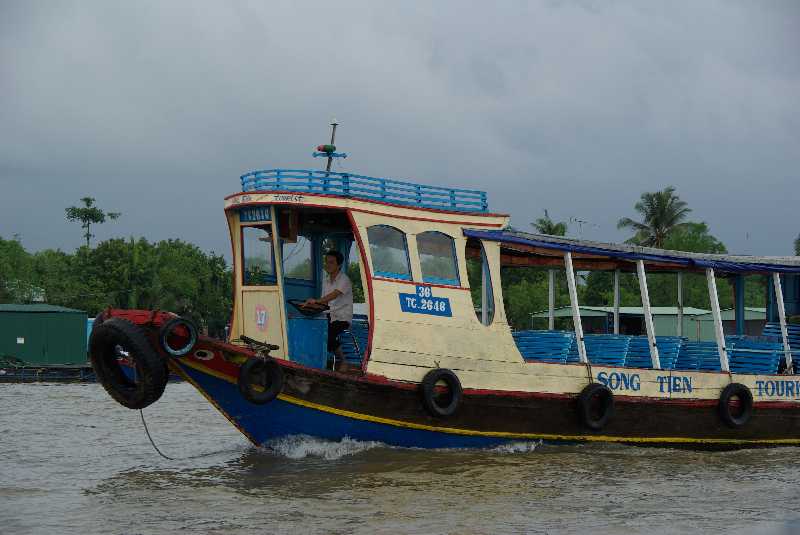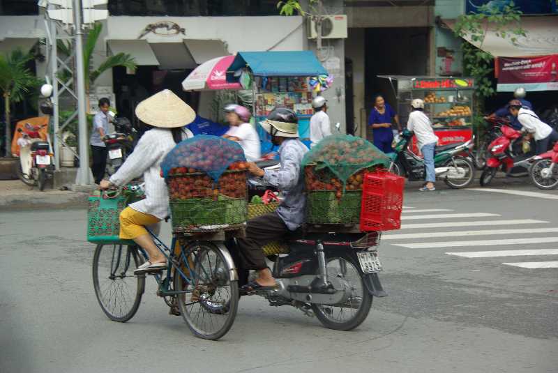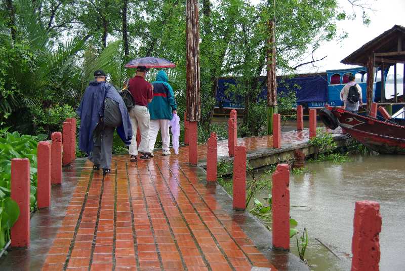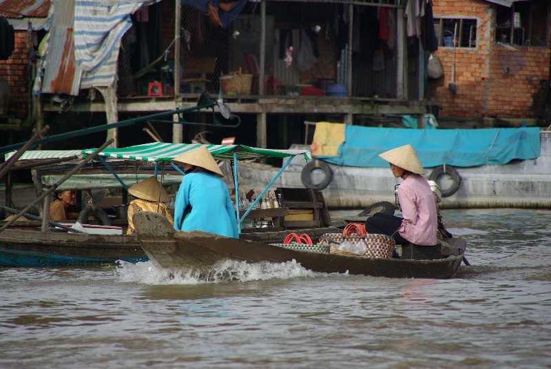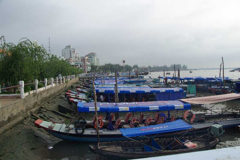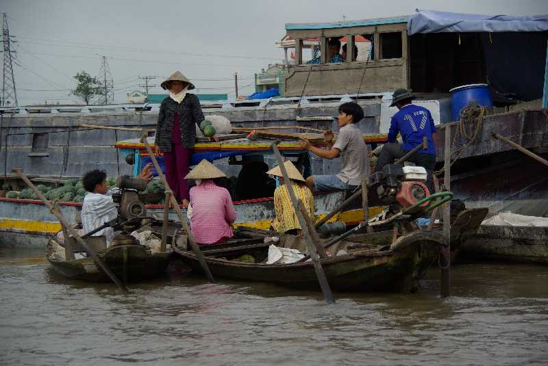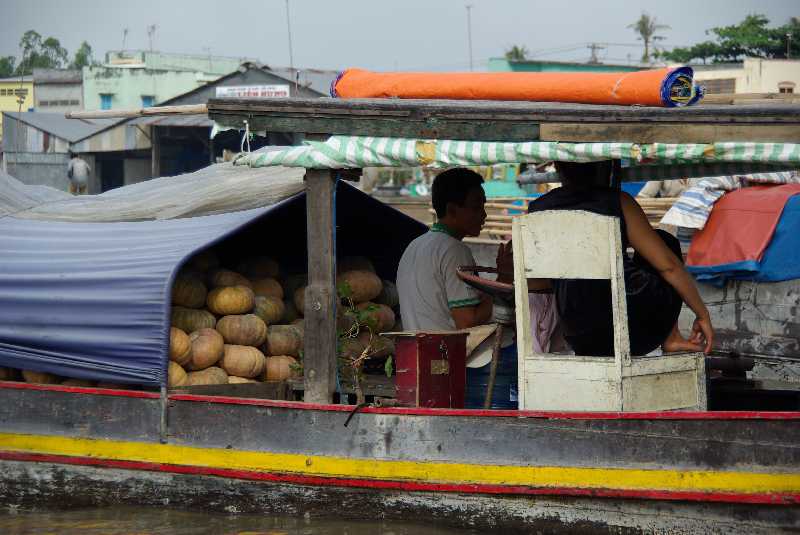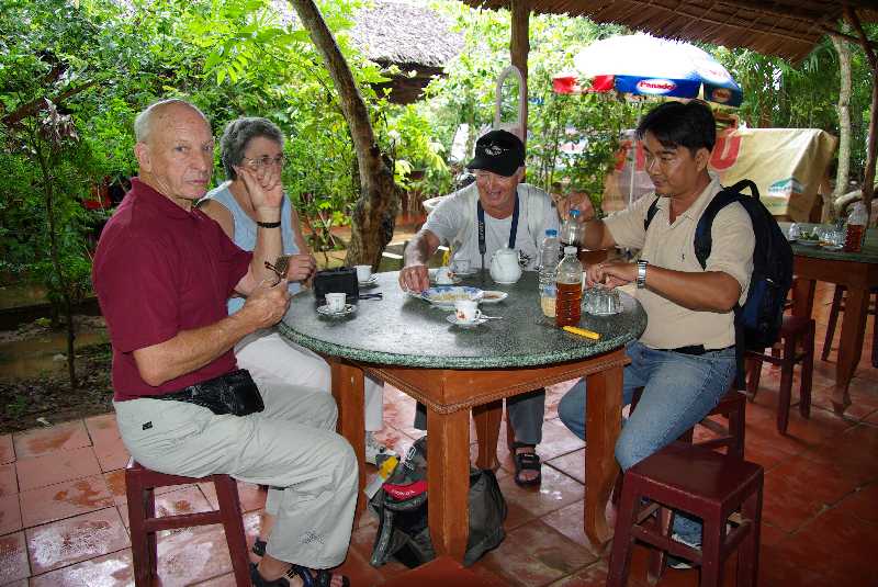 The next morning our tour guide picked us up and we were off on a drive to My Tho, the first province in the Mekong Delta. First, we boarded a boat and travelled up the Mekong looking at everyday life going on as usual. There were many boats transporting goods of all kinds and of course the dozens of sellers showing their wares and food for anxious buyers. Our boat then stopped at an island so we could visit the tropical fruit gardens where we sat down to taste local fruits such as watermelon, ginger and coconut. A lovely tea was served to us and we were shown jars of Royal Jelly - good for your health. The only downside to this day was that it was pouring rain but we managed to not get too wet and we enjoyed a lunch on another island that certainly brightened our day! We then drove to Can Tho for our next night's accomodation and settled into our hotel.