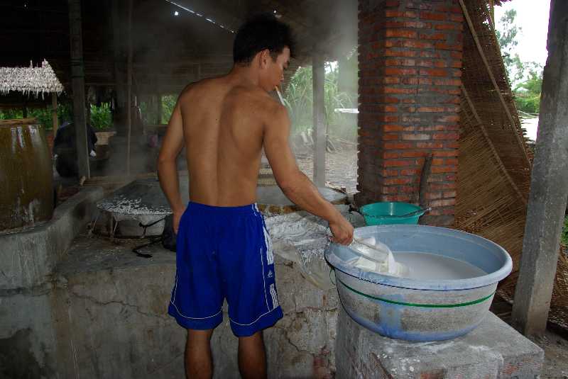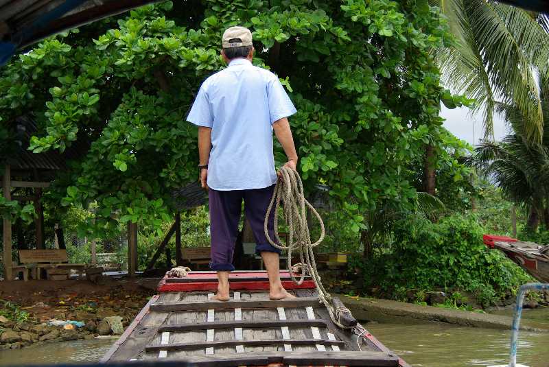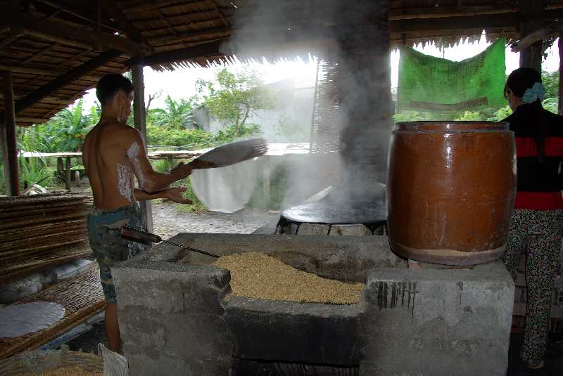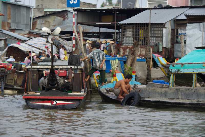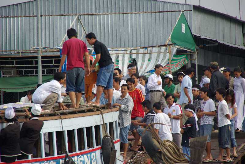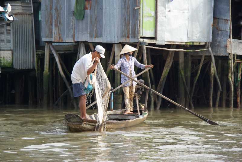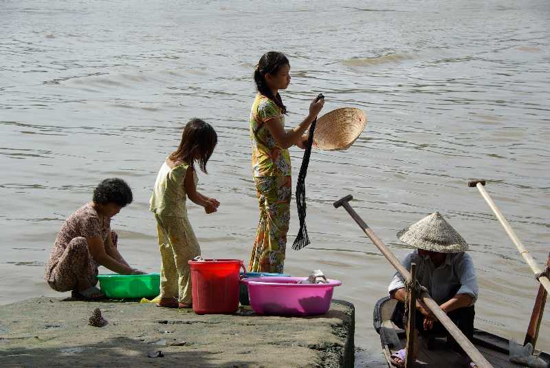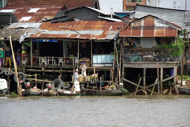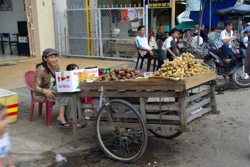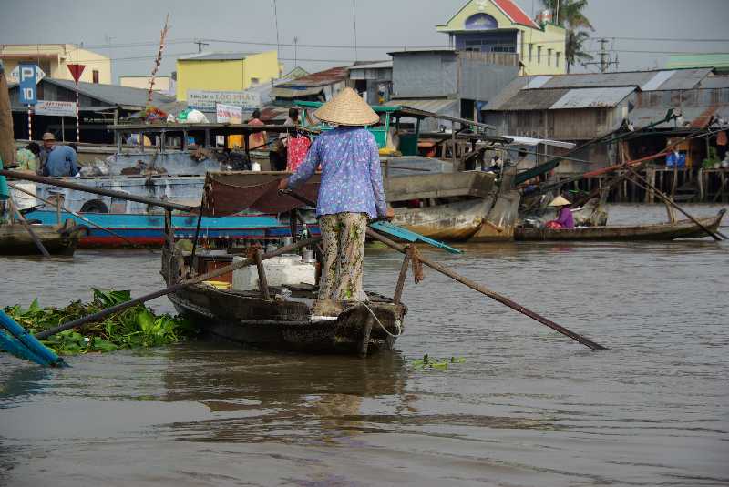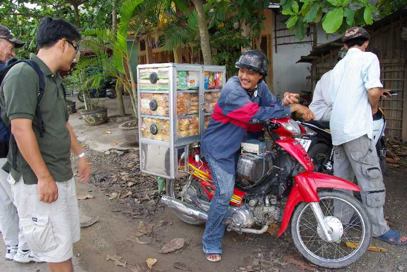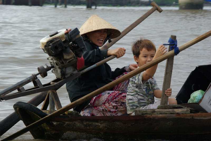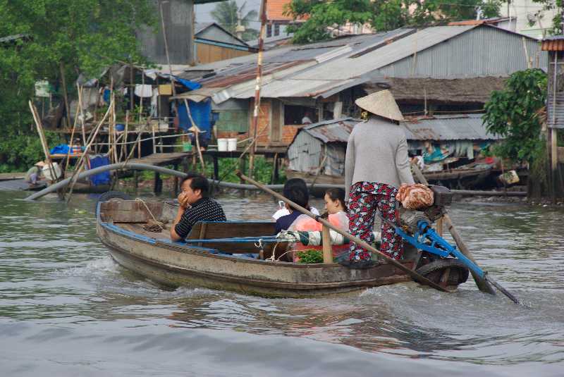 The next morning our tour guide picked us up and we were off on a drive to My Tho, the first province in the Mekong Delta. First, we boarded a boat and travelled up the Mekong looking at everyday life going on as usual. There were many boats transporting goods of all kinds and of course the dozens of sellers showing their wares and food for anxious buyers. Our boat then stopped at an island so we could visit the tropical fruit gardens where we sat down to taste local fruits such as watermelon, ginger and coconut. A lovely tea was served to us and we were shown jars of Royal Jelly - good for your health. The only downside to this day was that it was pouring rain but we managed to not get too wet and we enjoyed a lunch on another island that certainly brightened our day! We then drove to Can Tho for our next night's accomodation and settled into our hotel.