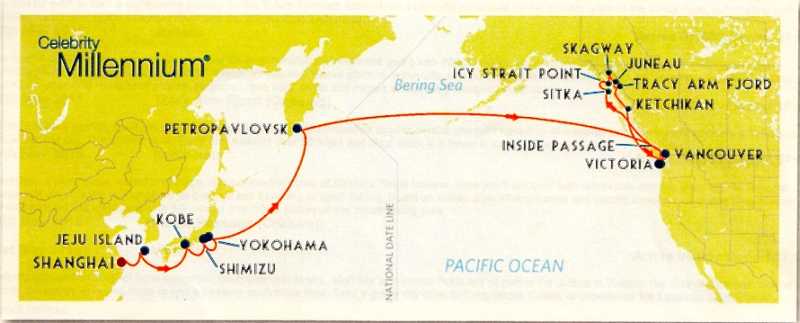 Shanghai and Cellebrity Millenium Ship - Jeju Island, Kobe, Shimizu and Yokohama - Petropavlovsk - Kamchatsky - Vancouver BC - Sitka and Icy Point Strait - White Horse Pass, Alaska - Skagway and Juneau - Tracy Arm and Ketchikan - The Inside Passage and Victoria BC