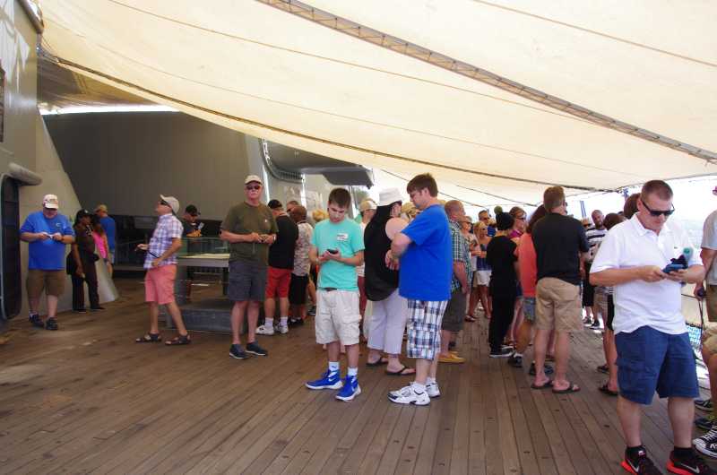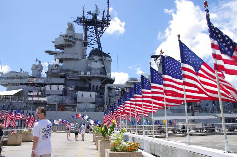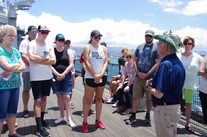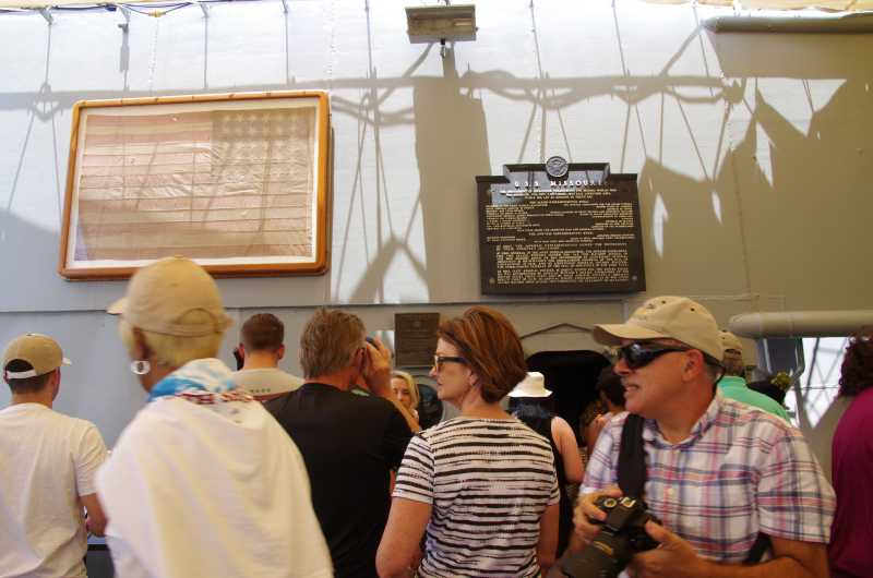 After our visit to the Pearl Harbour Visitor Centre, it was back on the coach to drive a short distance around the Harbour to see The Battleship, Mighty Mo BB63! As you walk in the size of this ship takes your breath away! It is 3 football fields long, beautifully restored after being decommissioned on 31 March, 1992. Each group is given a tour guide to talk you around the ship, and our guide was so knowledgeable and and interesting that we didn't want the tour to end. The ship is very large and takes time to get around, both above decks and below. Interesting to see how the sailors lived and worked. The guns on the ship look very large and the Main Gun Battery had a range of 23 miles when it fired. The most fascinating aspect of this ship is that it had the honour of The Japanese Surrender Document being signed on the Main Deck and that officially that ended the war. Again, too much to tell so the pictures should fill in more details.
