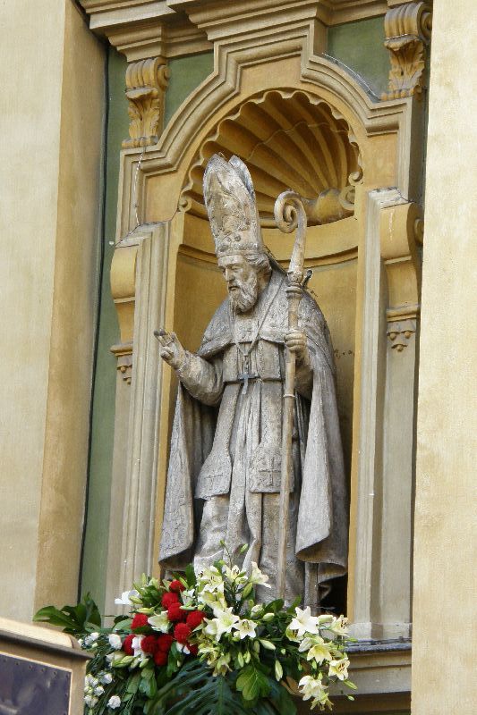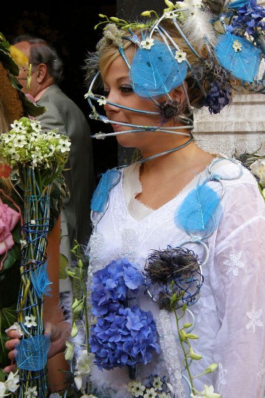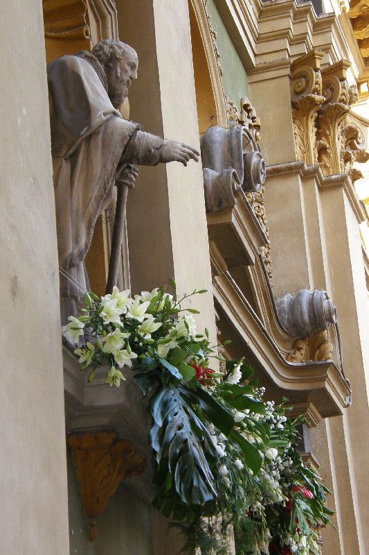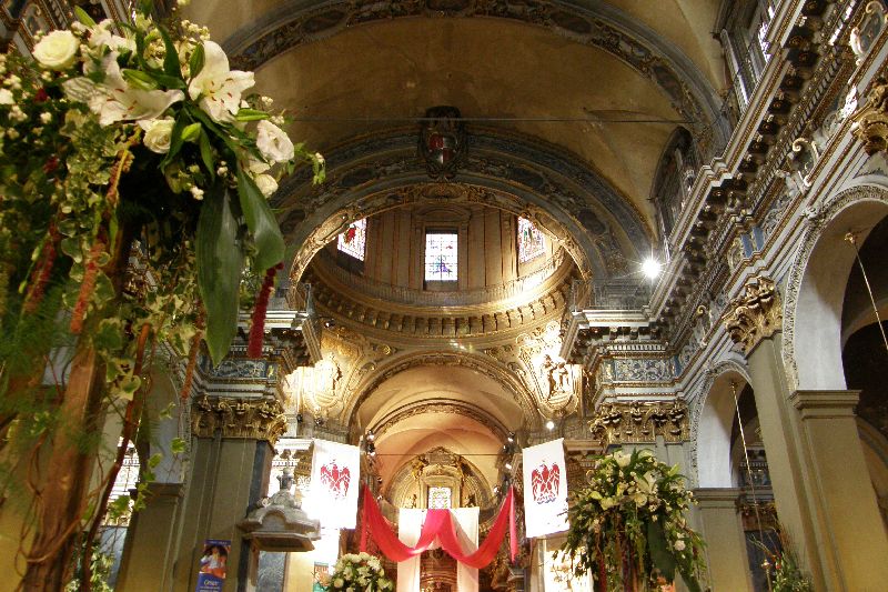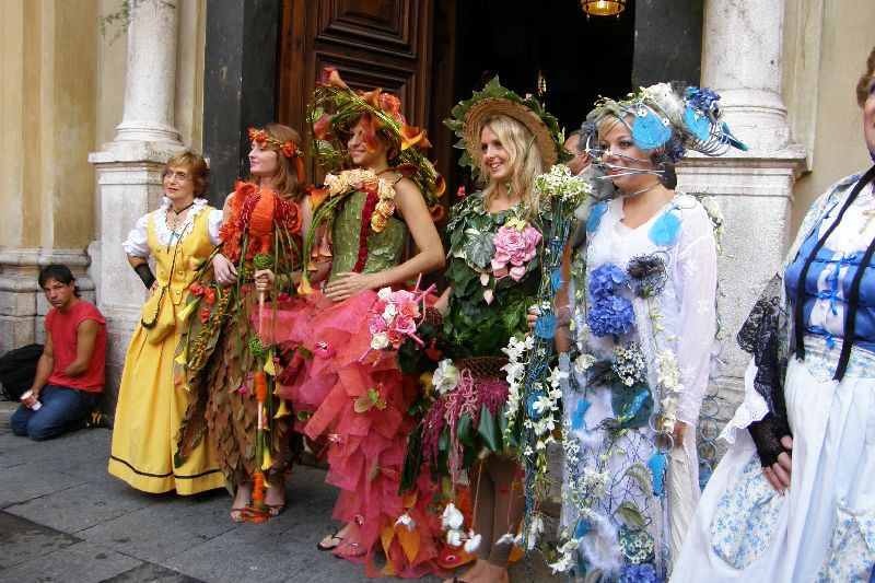 a magnificent church where the festival of fruit and food was being celebrated and to top it off some young girls dressed in