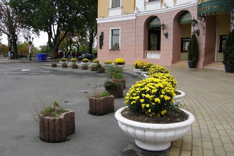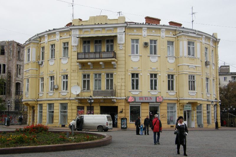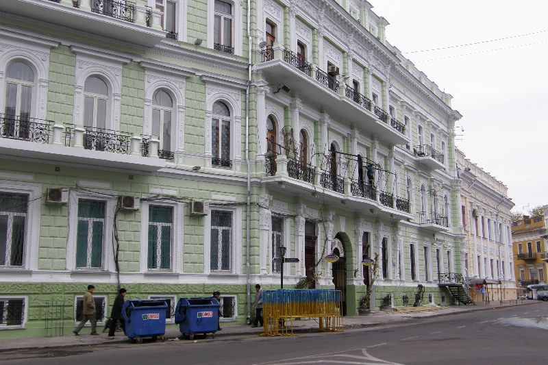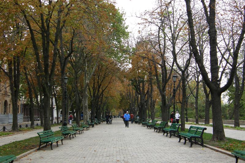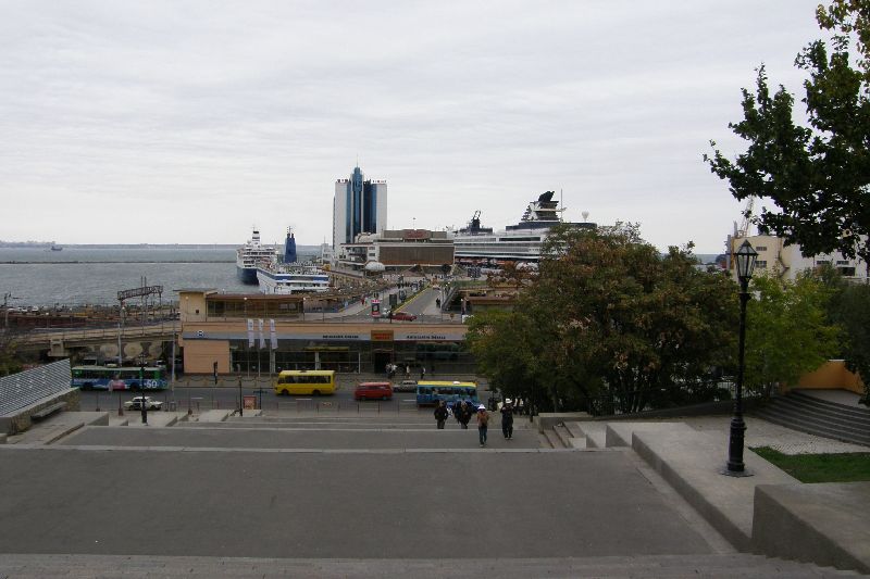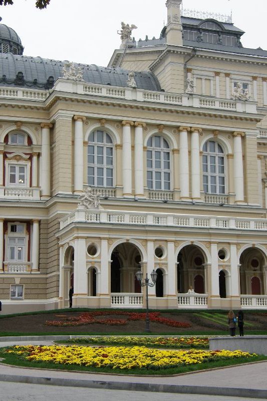 9 Degrees today in Odessa and we all rugged up before alighting the ship. Outside the terminal was a lovely statue of a mother and baby and from here we could see the famous Potemkin Steps. These steps have a fascinating history as there was a famous battle here in 1905 between sailors and the Czar's soldiers. An odd thing here is that you cannot see the steps from the top - only landings but from the bottom they are in plain sight. Apparently this is an optical illusion. From here we walked the Primorskie Boulevarde and then along some of the beautiful streets here.
