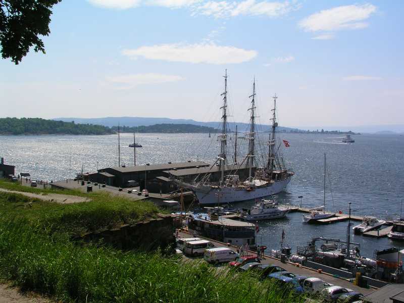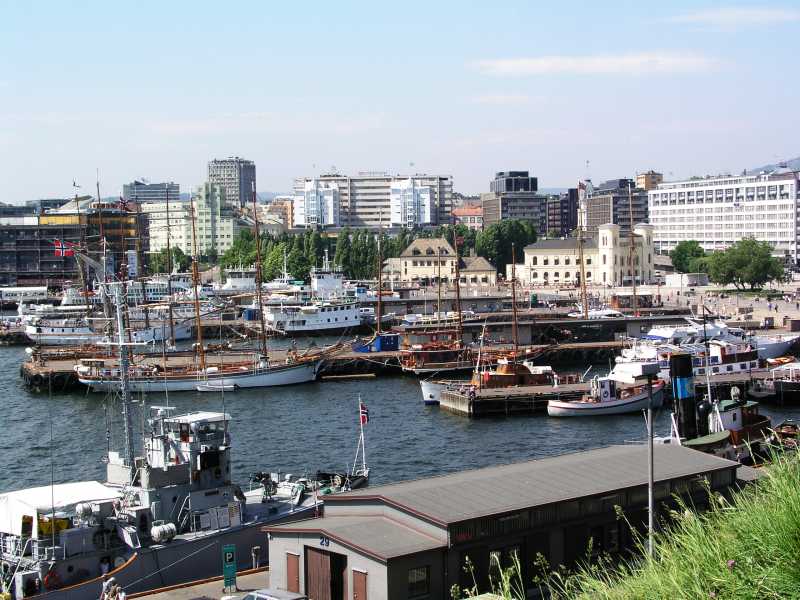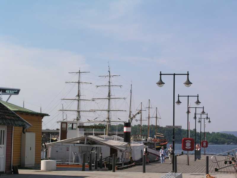 We reached the harbour in Oslo and found it to be very busy with sailing ships, ferries and many people going about their business.