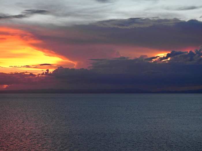 Watching afternoon sunsets from the deck of a ship just has to be so beautiful and relaxing. Fantastic colours and cloud formations all help to add to the ambience of the horizon and sky. Even the moon showed off for us and what a treat! Another delight of sailing.