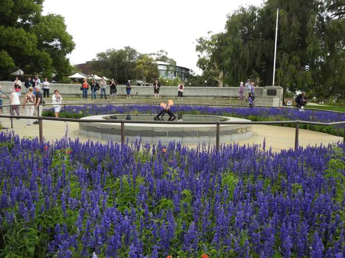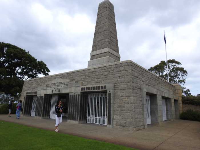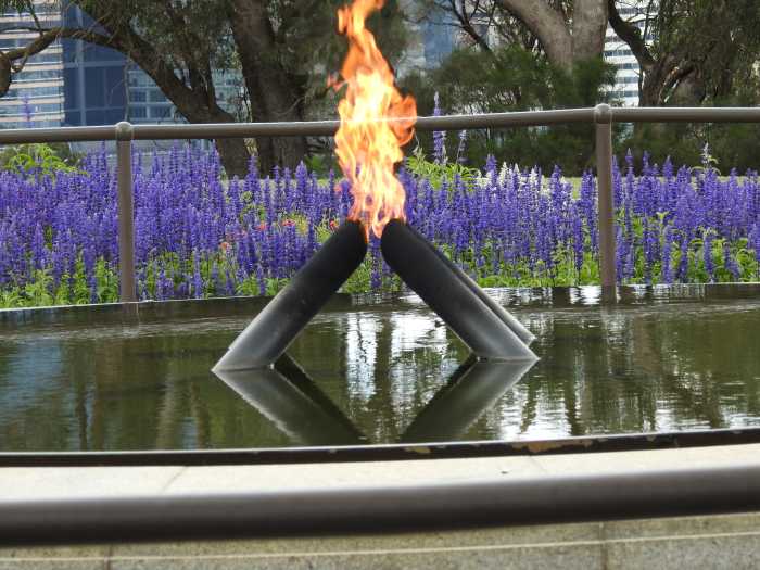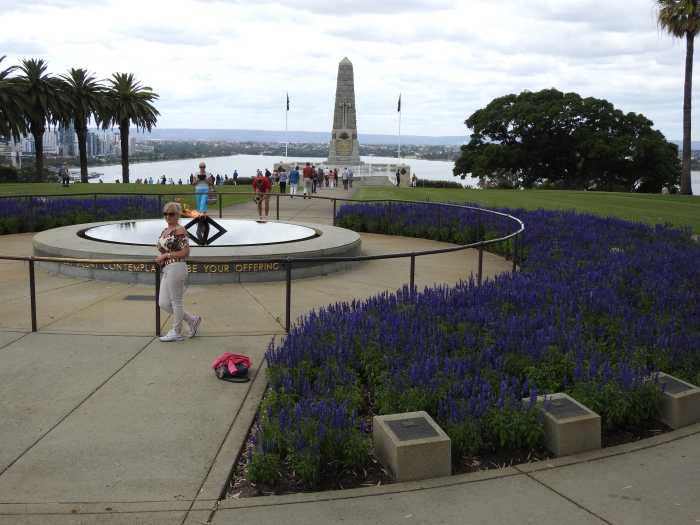 Driving into the Western Australian Botanic Gardens was a delight as at the base of the trees on the side of the road were plaques to commemorate family members lost in the war. Very soon we arrived at the Gardens and off the coach to walk around and explore the lovely flora that Western Australia is so well known for. Lovely gardens, beautiful native flowers and trees and the colour was amazing. Coming across the Queens Tree was a surprise as it incorporates her picture of the actual planting in 1954. A highlight was The Cenotaph and the Eternal Flame dedicated to Serviceman in The Great War. This is a lovely place of Remembrance and fabulous Park area to bring families and picnic or reflect on history. It also has wonderful views of the City.