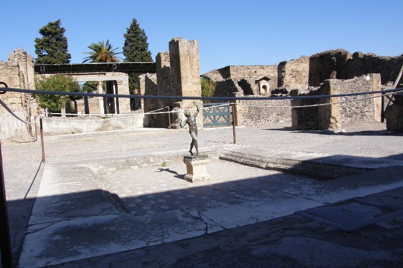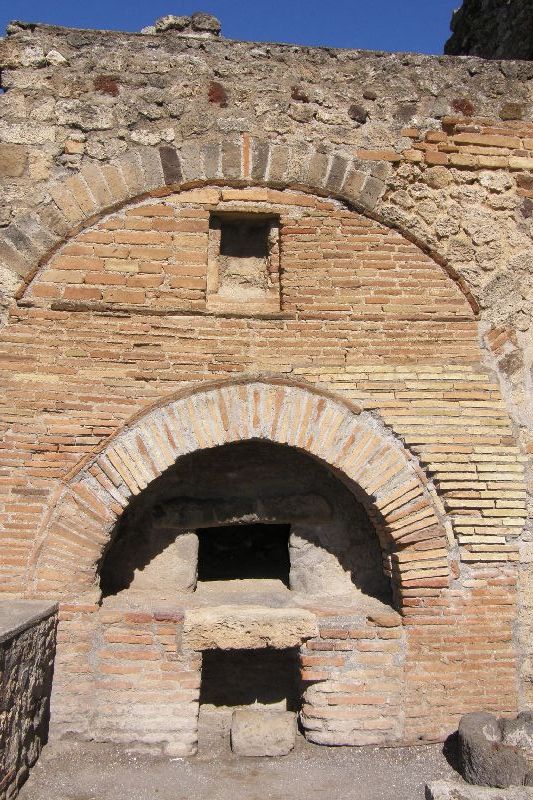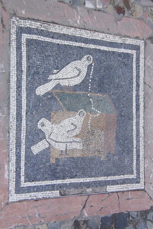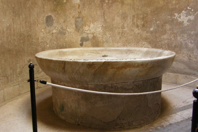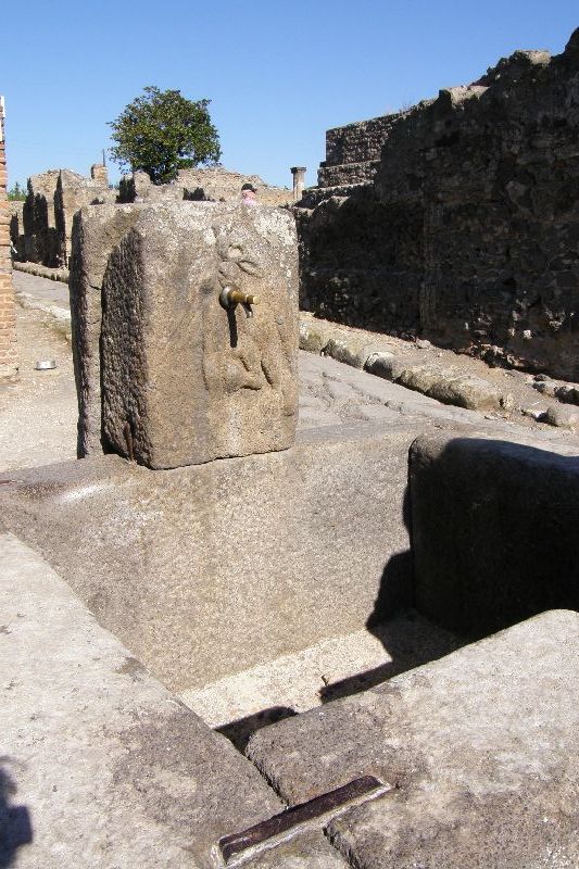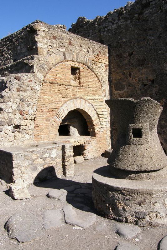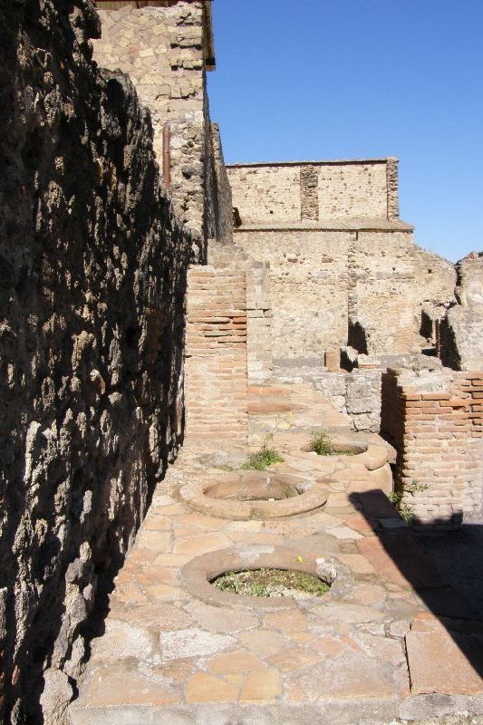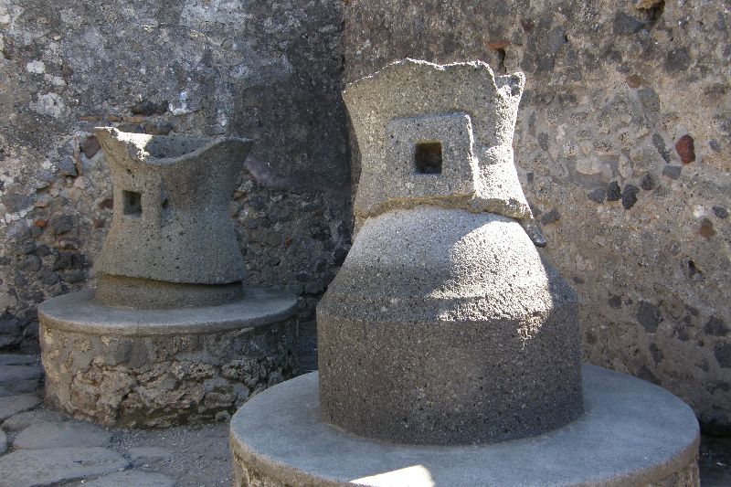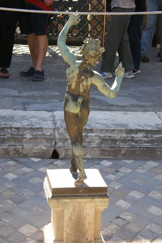 Not too far away was the House of Faun, renowned as the largest house in Pompeii. In the centre is a bronze statue of the "Faun" with rooms all around with mosaics that have survived centuries of time. The house covers approximately 2,970 square mtrs and it is a very important part of the history of Pompeii. The House of the Baker showed some of the areas used to create bread in the times. There is a table here that was used to rest the bread before baking and the oven and the grain storage bins are well preserved.