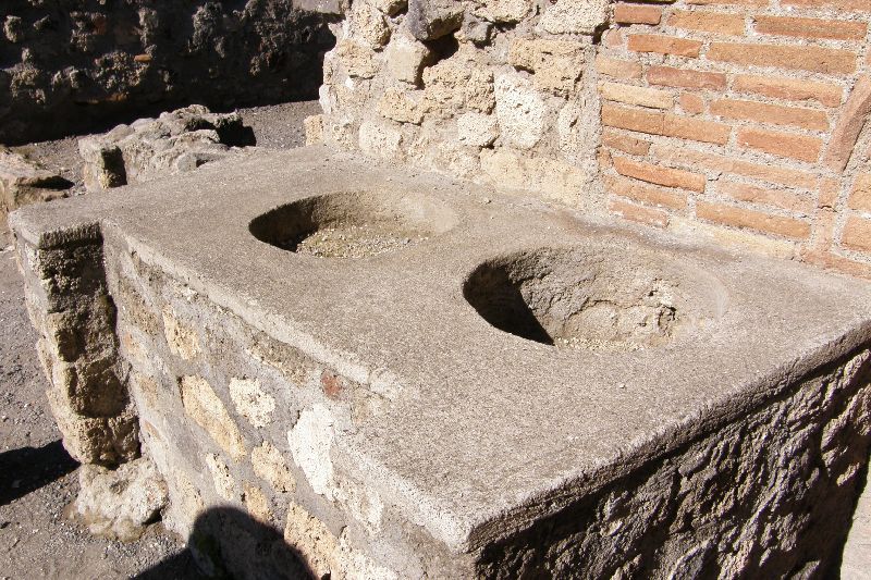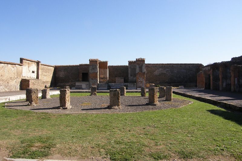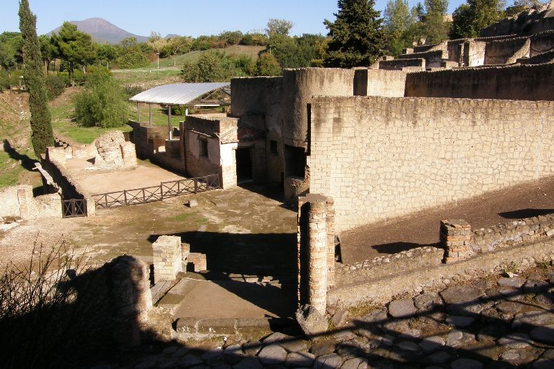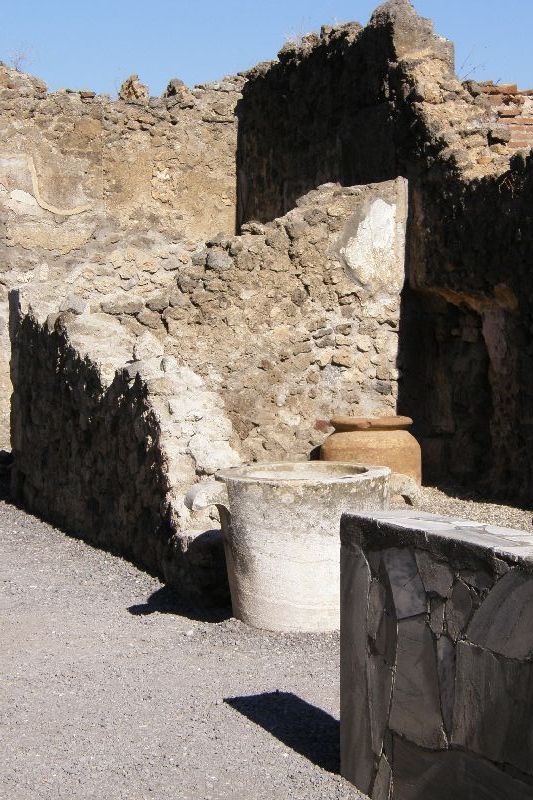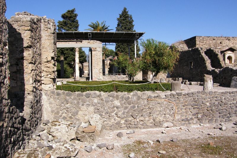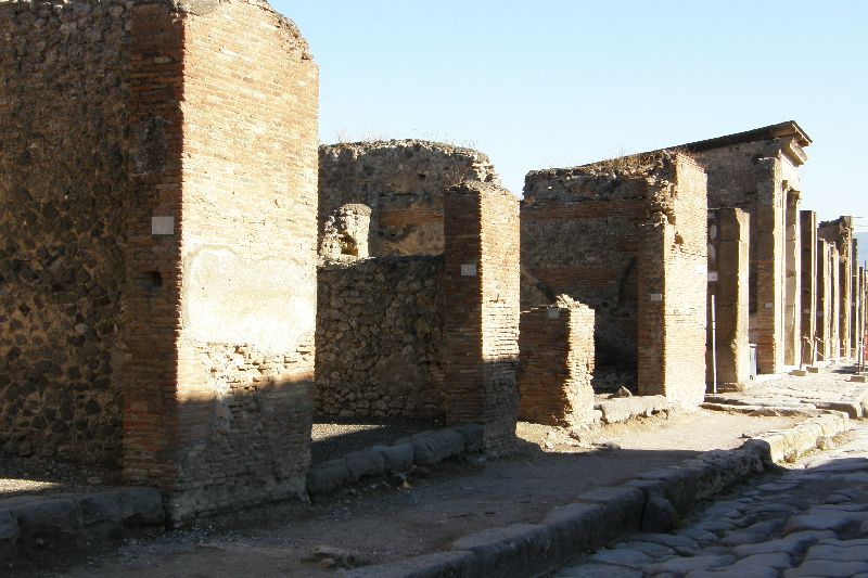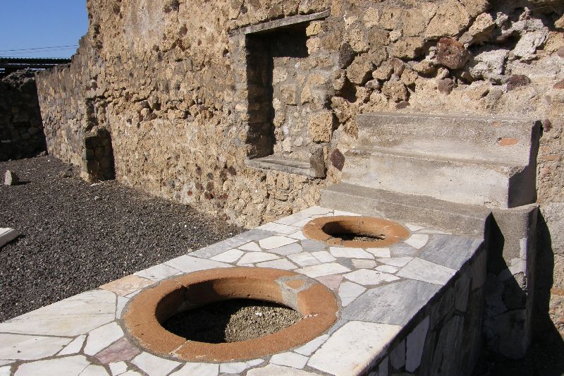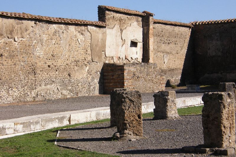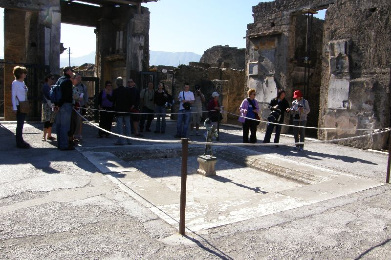 Not too far away was the House of Faun, renowned as the largest house in Pompeii. In the centre is a bronze statue of the "Faun" with rooms all around with mosaics that have survived centuries of time. The house covers approximately 2,970 square mtrs and it is a very important part of the history of Pompeii. The House of the Baker showed some of the areas used to create bread in the times. There is a table here that was used to rest the bread before baking and the oven and the grain storage bins are well preserved.