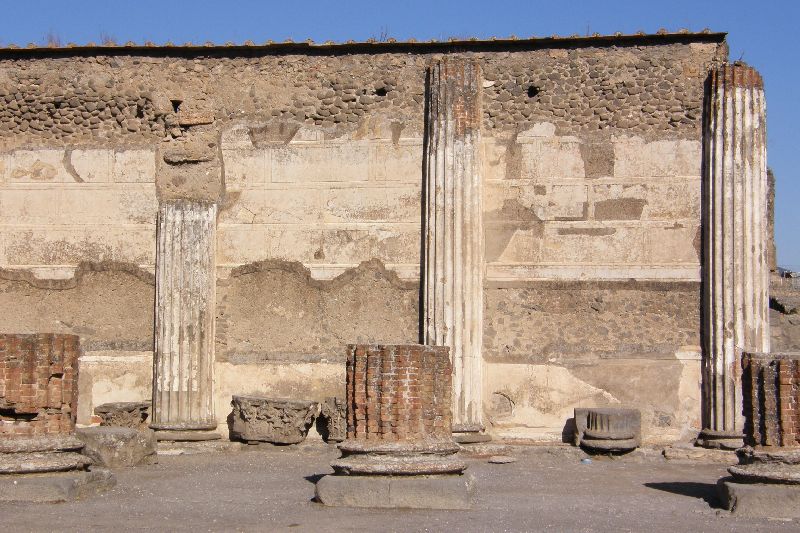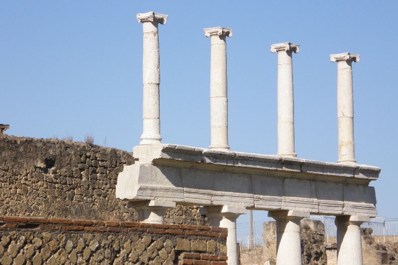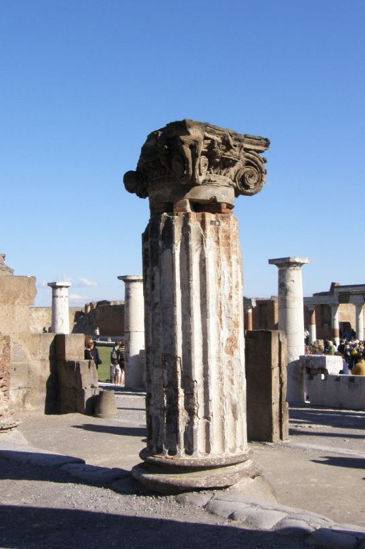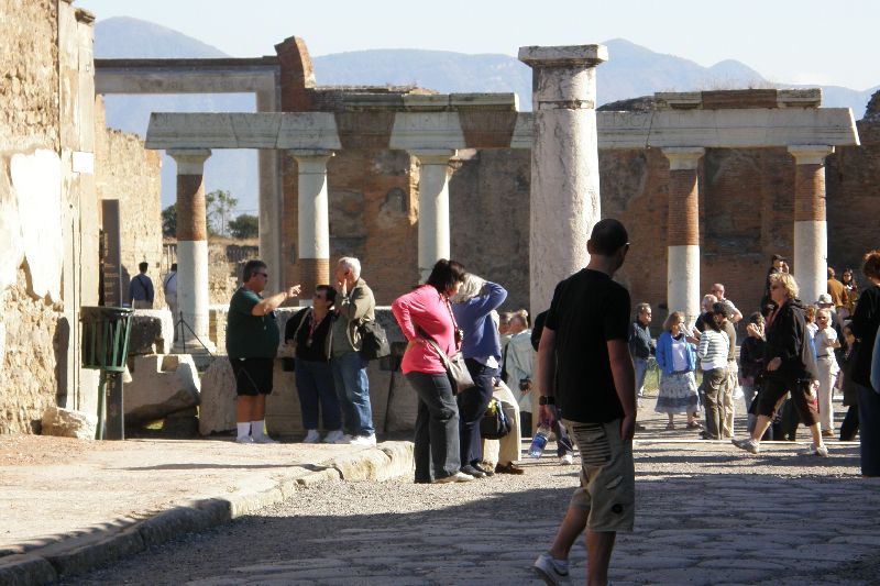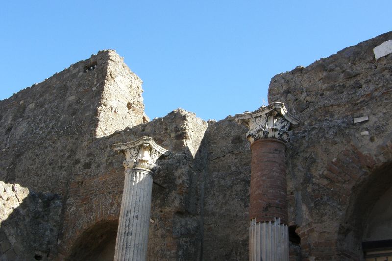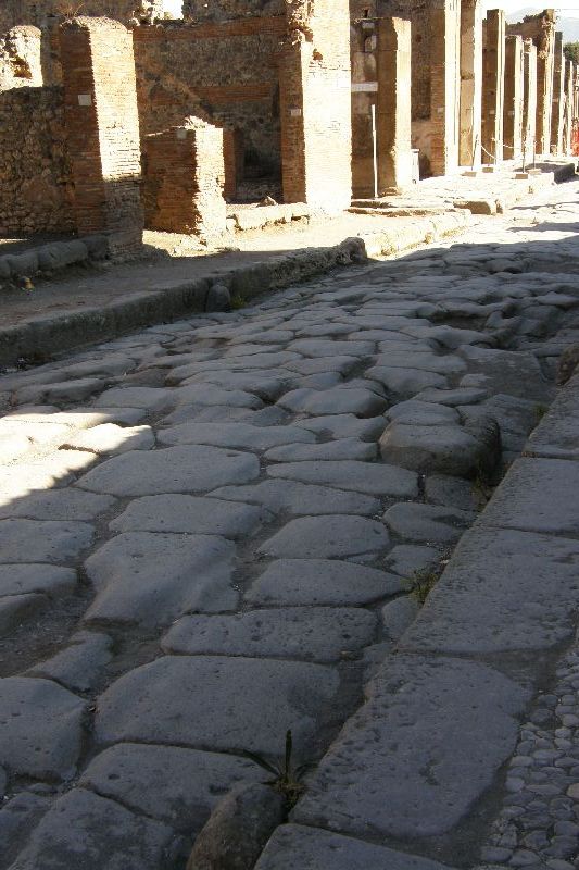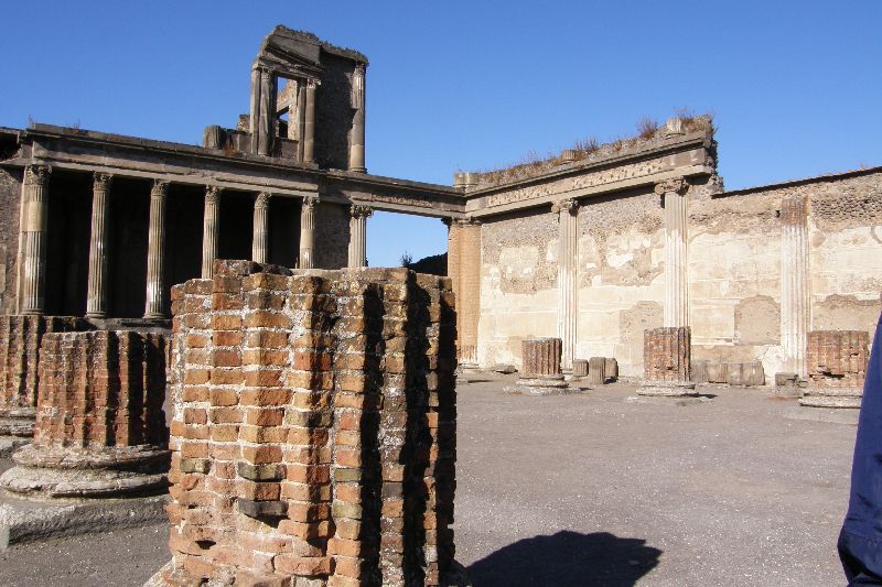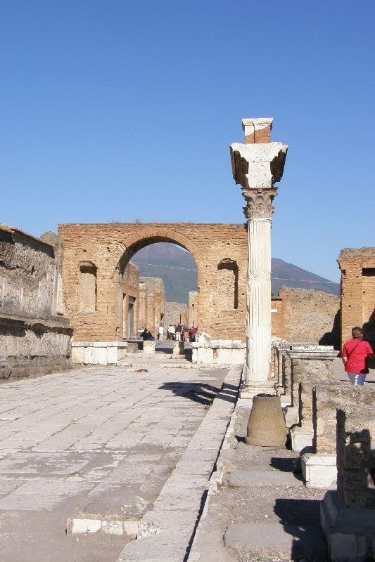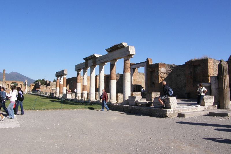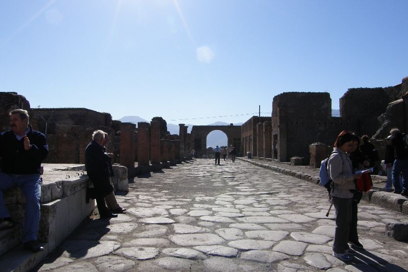 Our tour today is to visit the amazing Ruins of Pompeii to see the remaining structures and how people lived centuries ago. Boarding our coach in Sorrento we left and wound our way along the brilliant Amalfi coastline and soon the magnificent Mount Vesuvius appeared on the skyline. On the 26th August, 79AD this mountain erupted spewing volcanic mud and lava all over the town, catching the people of Pompeii at their everyday tasks. We entered this archaelogical site and when receiving our tickets were given a little book that explains what a lot of the sites are. very helpful! We did have a very experienced tour guide and he gave us ongoing commentary as we walked around. There were about 20,000 people here and evidence shows that the Roman way of life indicated that they had a very complete lifestyle including theatres, public baths, shops and they embraced art in many facets of their everyday activities. We entered through one of the seven gates of Pompeii and soon came across the Temple of Venus. There is not much left today but indications are that it was made of marble along with natural stone. The Basilica was quite close by and the remains of the columns in the centre show the size it may have been. The portico with a section of the second floor were incredible to see. The Forum was next in our sights and it was the city's main square and and such a very busy part of the city.