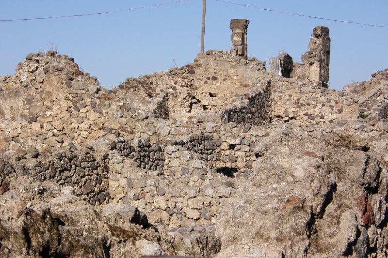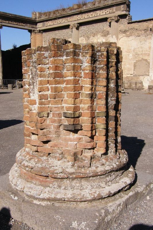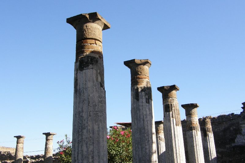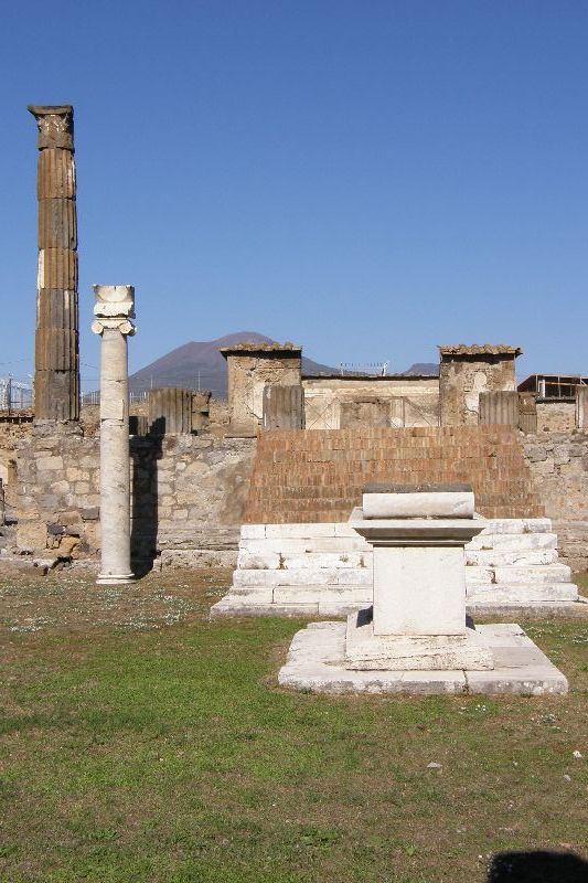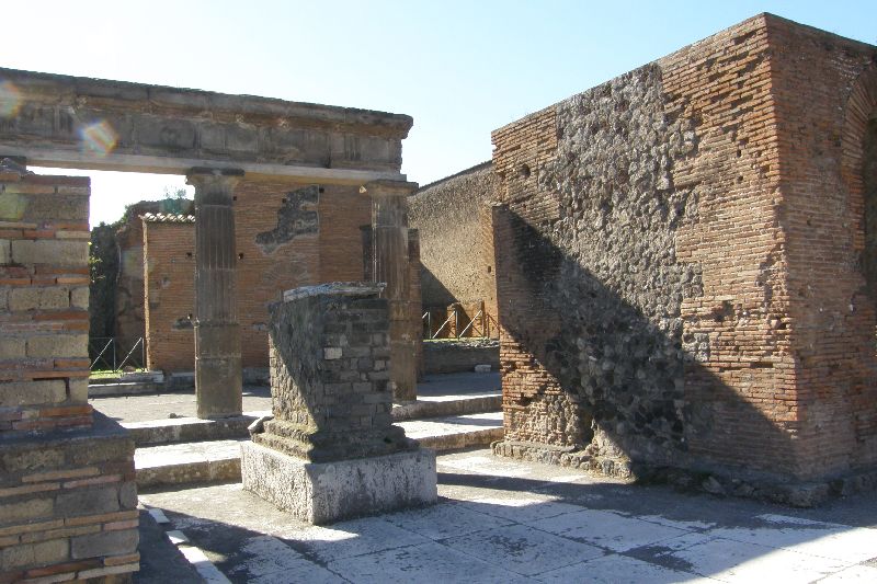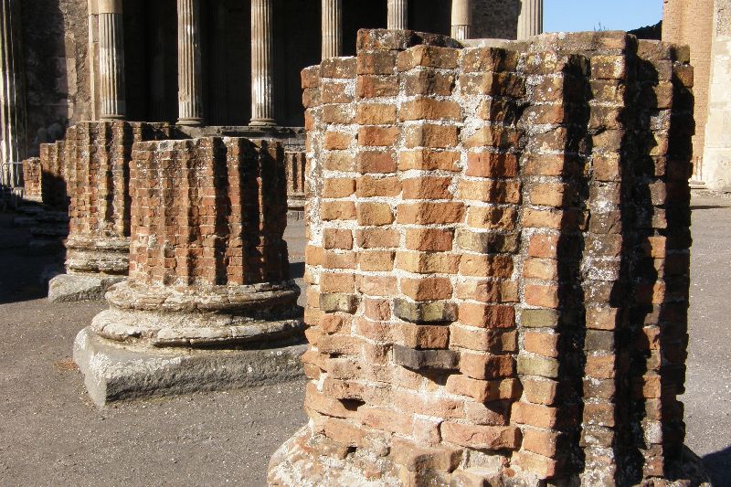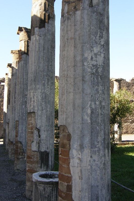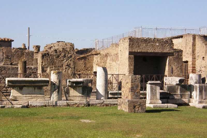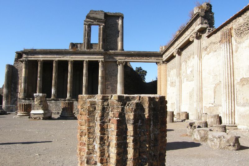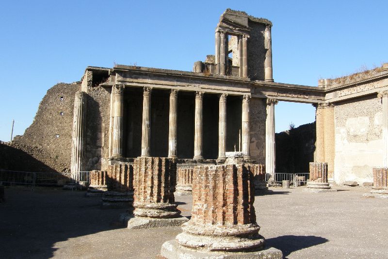 Our tour today is to visit the amazing Ruins of Pompeii to see the remaining structures and how people lived centuries ago. Boarding our coach in Sorrento we left and wound our way along the brilliant Amalfi coastline and soon the magnificent Mount Vesuvius appeared on the skyline. On the 26th August, 79AD this mountain erupted spewing volcanic mud and lava all over the town, catching the people of Pompeii at their everyday tasks. We entered this archaelogical site and when receiving our tickets were given a little book that explains what a lot of the sites are. very helpful! We did have a very experienced tour guide and he gave us ongoing commentary as we walked around. There were about 20,000 people here and evidence shows that the Roman way of life indicated that they had a very complete lifestyle including theatres, public baths, shops and they embraced art in many facets of their everyday activities. We entered through one of the seven gates of Pompeii and soon came across the Temple of Venus. There is not much left today but indications are that it was made of marble along with natural stone. The Basilica was quite close by and the remains of the columns in the centre show the size it may have been. The portico with a section of the second floor were incredible to see. The Forum was next in our sights and it was the city's main square and and such a very busy part of the city.