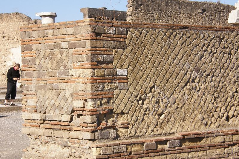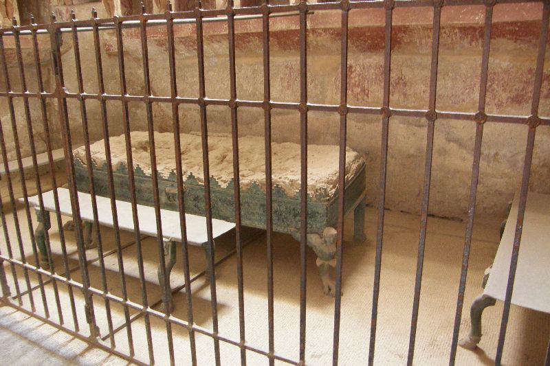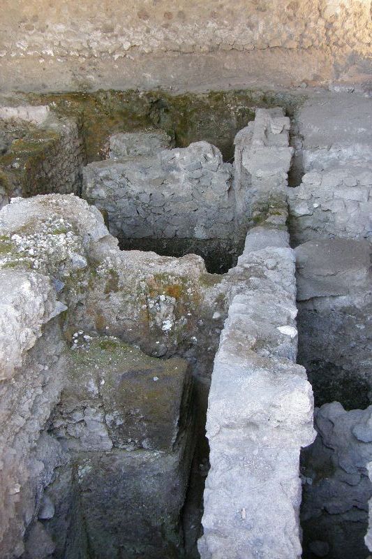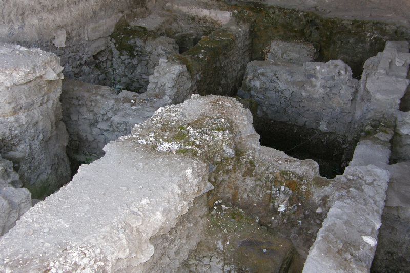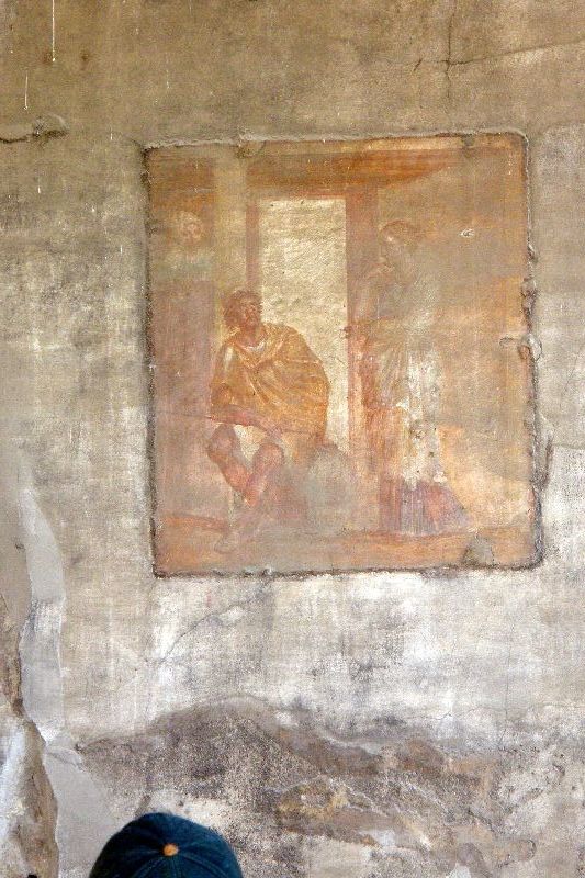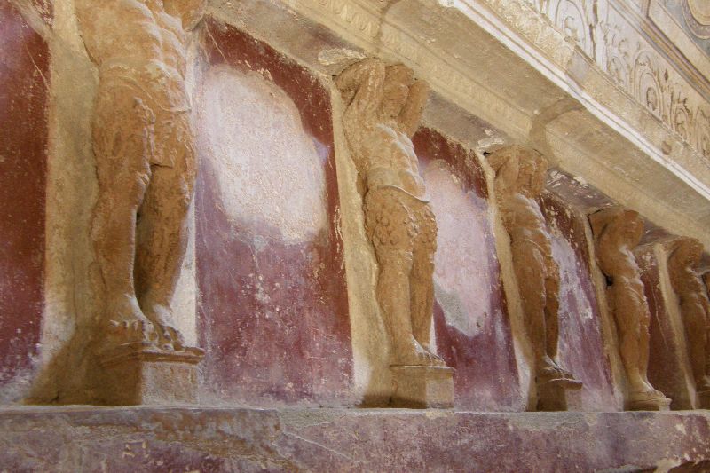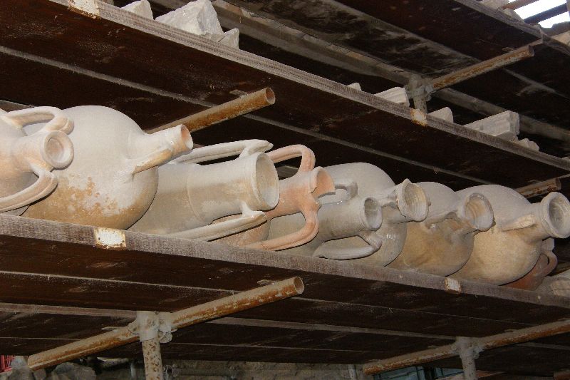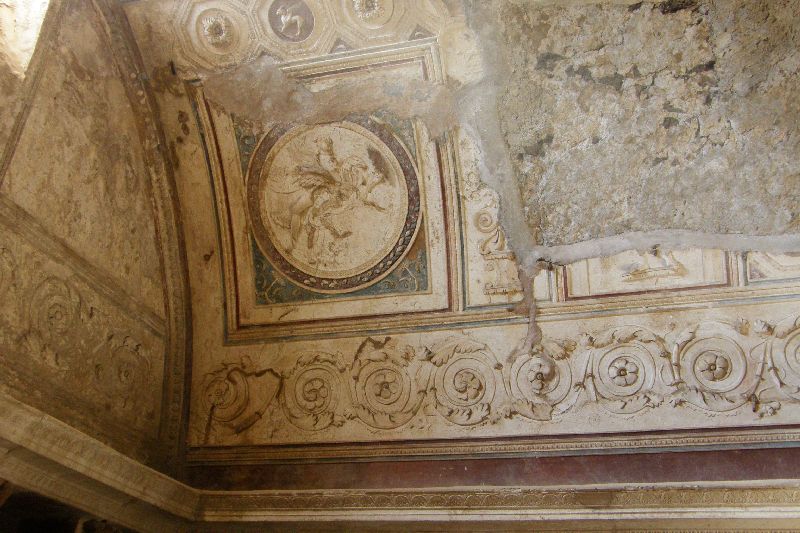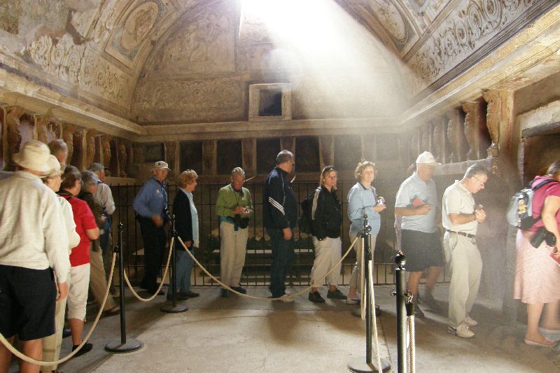 The Forum Granary had some plaster casts of people and animals that have been recovered from the site and we found them incredible down to the expressions on their faces or frozen movement of their bodies. The actual remains have been relocated in other places because of their historical importance. Other pieces of goods are here such as jugs, vases and pieces of furniture of the era. We then visited the Forum Baths that were built after 80BC. There were two rooms here, one for heating and one for bathing and both had decorations on the walls and ceilings as well as statues around the rooms in appropriate places.