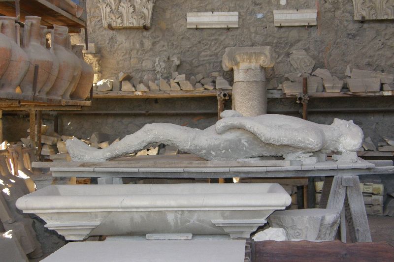 Again, more examples of people caught in this horrific event that did bring to our notice, the horrors of such an incredible natural disaster. Next was the Temple of Apollo with replica statues of Apollo and Diana on opposite sides but facing each other. It is a Doric style building with a colonnade and sundial which dates back to Augustus. It appears to be one of the oldest structures here but had been rebuilt, even back in centuries. Too soon it was time to leave and return to Sorrento and the Marco Polo.