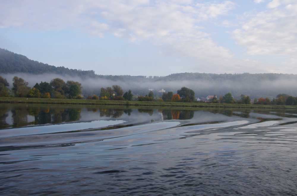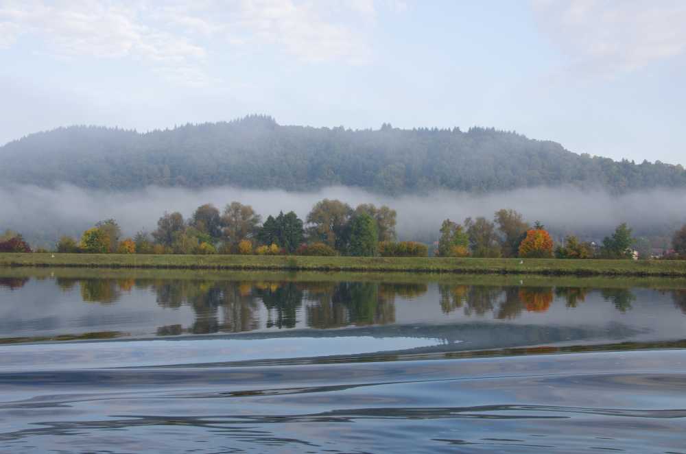 An early morning sail gave lovely reflections on the water and added to the beauty of the river. We passed Walhalla, a striking