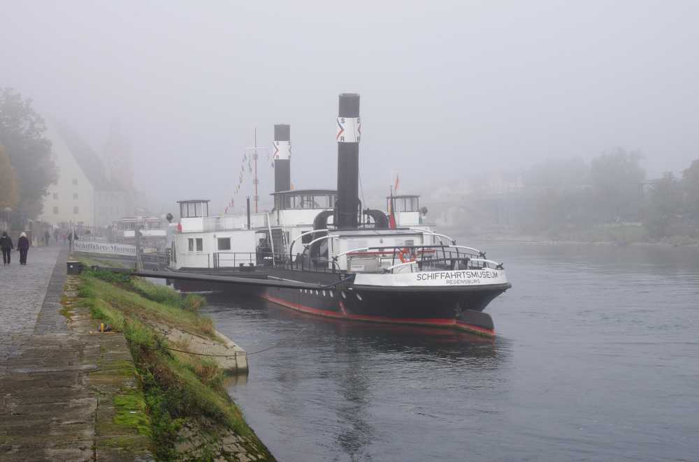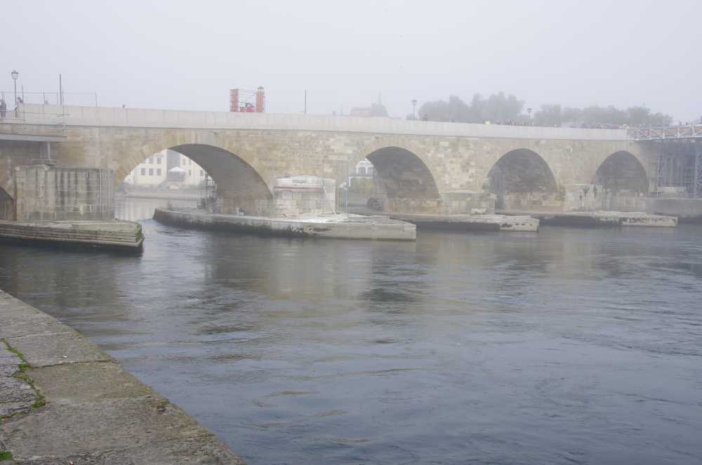 Arriving in Regensburg, we found a bit of fog or mist on the water and that added to the magic of the town itself. Regensburg is one of