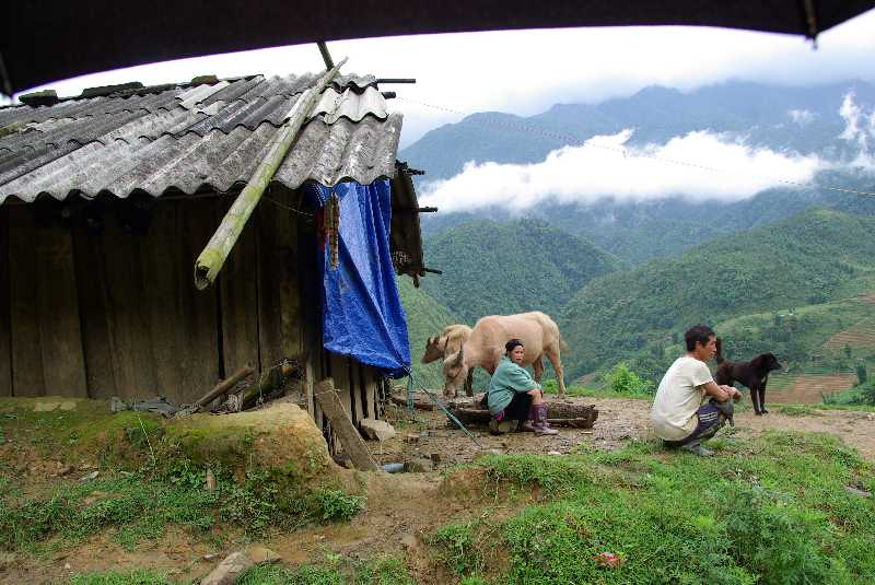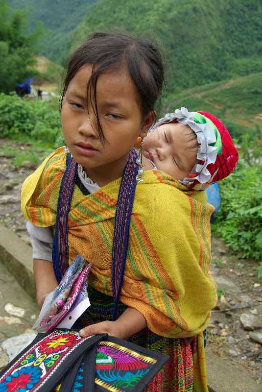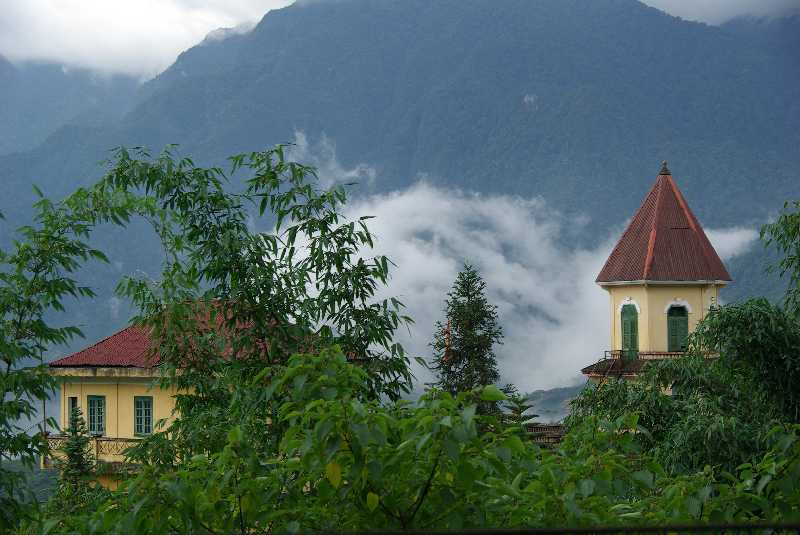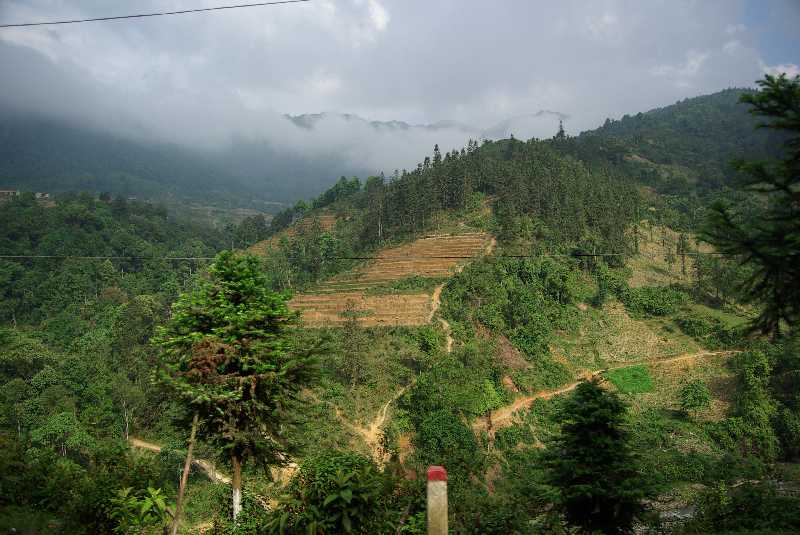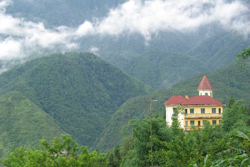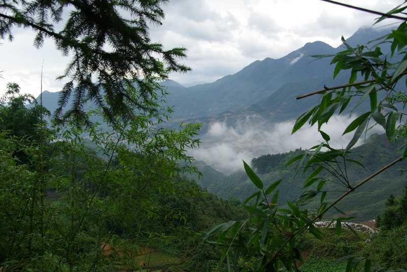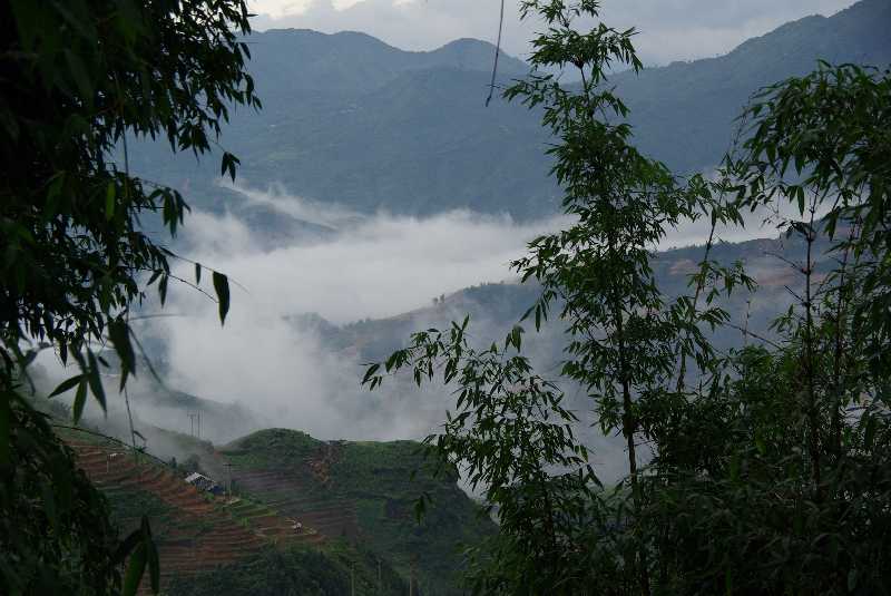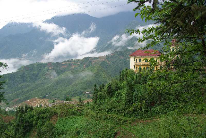 Off again on another long trip to Sapa in our van.. We climbed the Hoang Lien Son mountain range which houses Vietnam's highest mountain, Fansipan. It is some 3143m high and would take 3 days to reach on foot from Sapa. The weather became cooler the higher we went and became very overcast. Our hotel, the Goldsea, was located in a magic spot as we had a wonderful view over the mystical mountains.