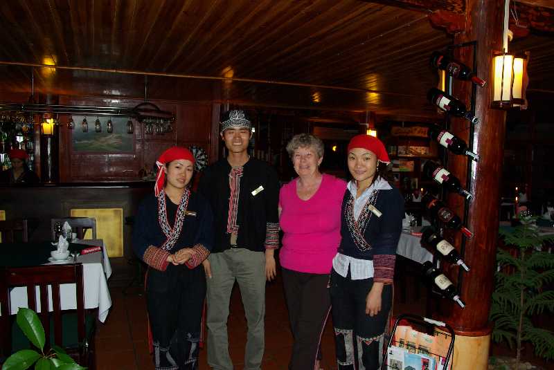 Looking out over the edge of the road gave us an insight of the whole mountainous area and as it was mid afternoon we decided to tour the town. Towns like this have their own special attraction and Sapa had lots to offer. Unique buildings, Black H'mong people walking about and the comparison between the old and the new. Catering for tourists is becoming obvious and the many restaurants and shops show change. Wan took us to a restaurant for dinner that was delightful and the staff were just fantastic! A good night was had by all.