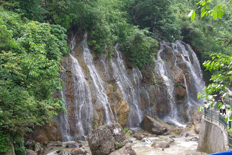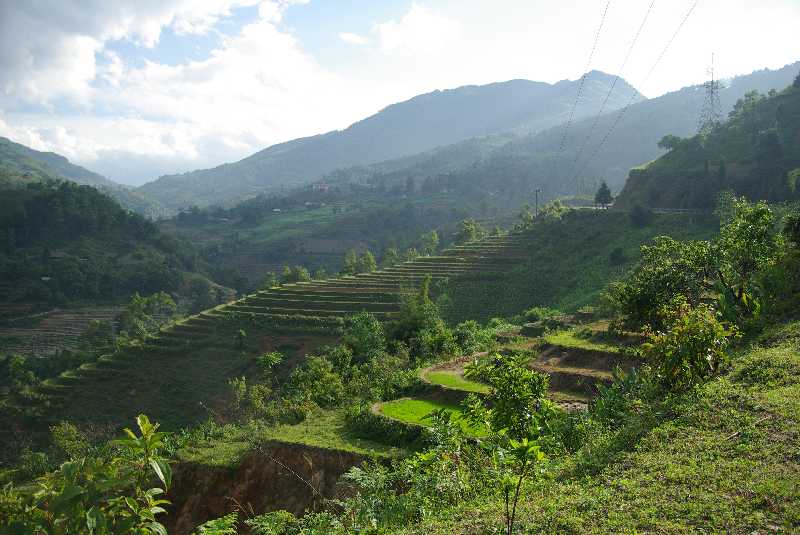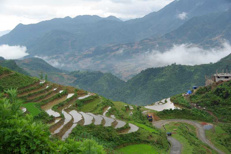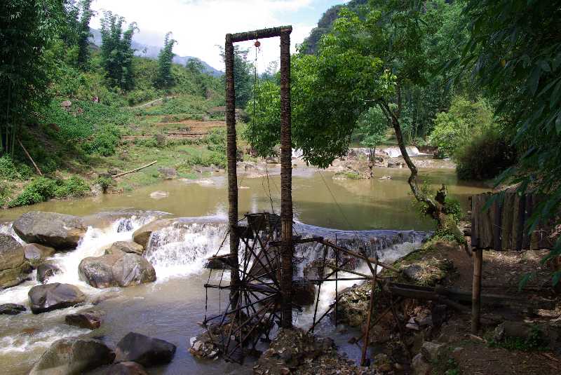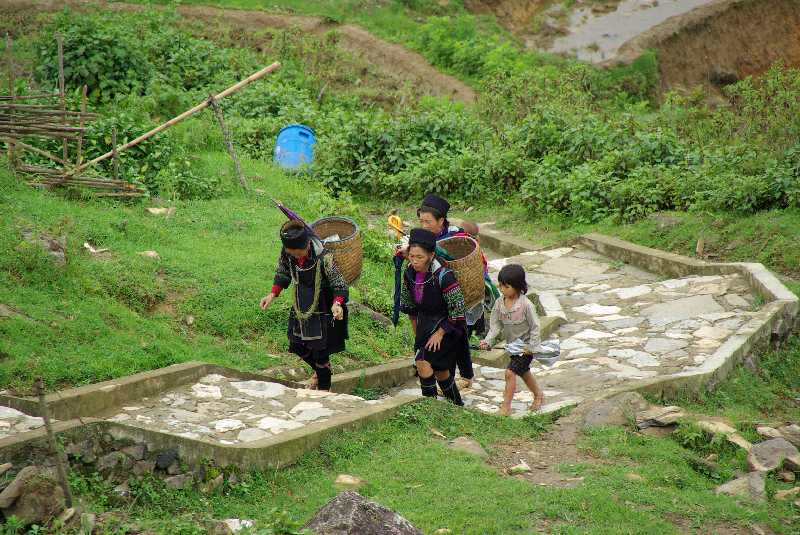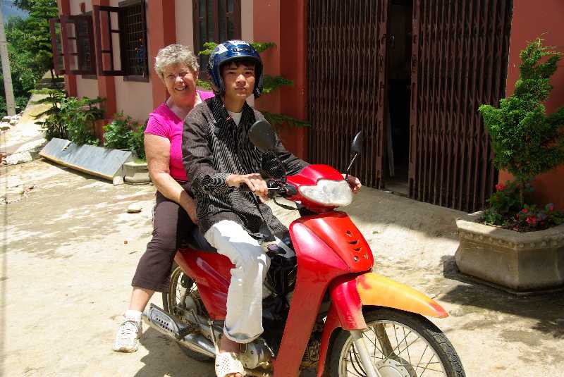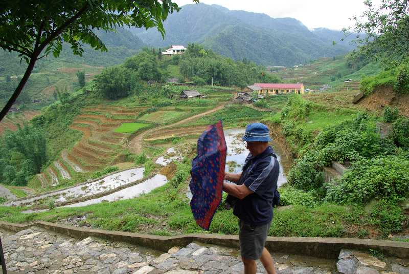There was nothing planned on our itinery but our entertaining and enthusiastic guide, Wan asked if we would like to take a walk down to Cat Cat Village and of course we took up his suggestion with pleasure. What a lovely walk as the entrance road was just near our hotel. The views were just outstanding as we wound our way down the mountain. The mist and the greenery made for marvellous scenery and the further we walked the more small huts and villagers we came across. Wan knew a farmer on the way who invited us into his home to meet his family. The children were most appreciative of the small gifts we had with us. Climbing down stone steps we continued on until we came to some magnificent waterfalls. The scenery was breathtaking and we spent some time just taking in the views. After a while we starting to traverse a pathway for sometime and then of course, climb more steps until we came across the group of local bikeriders waiting to take us back up the mountain. It was a long ride back up and hard to believe we had walked down so far!!