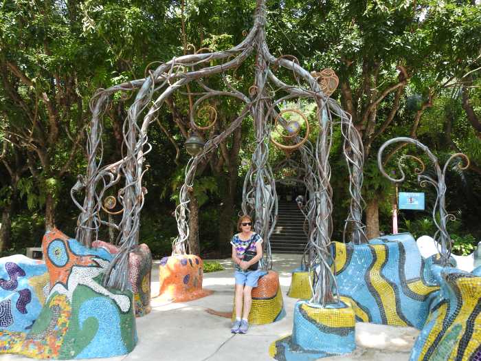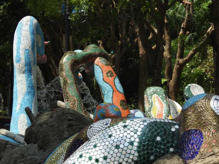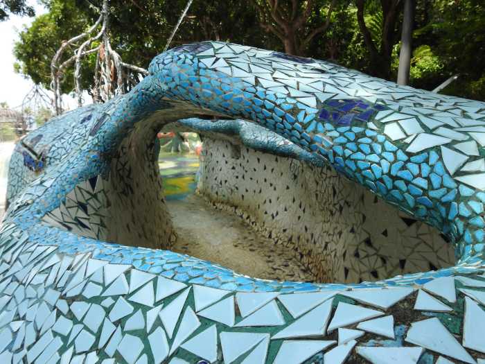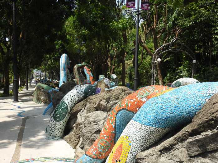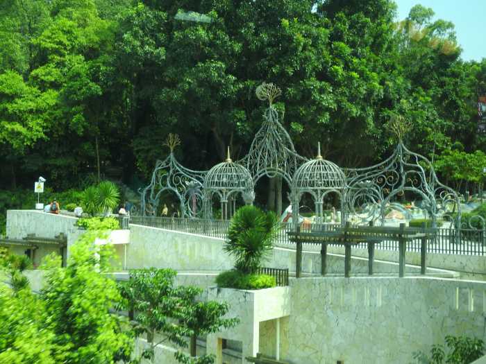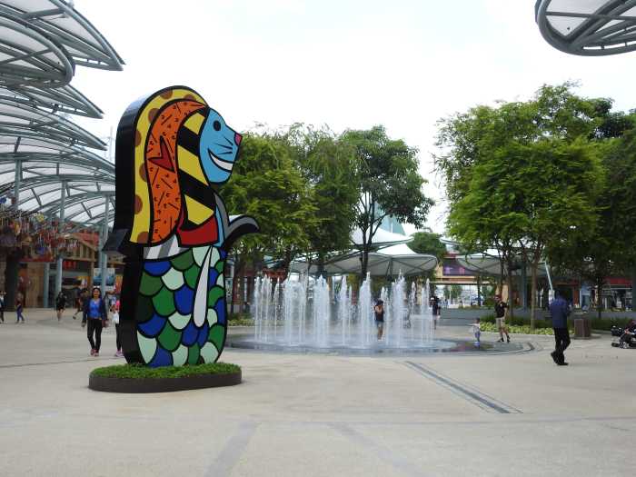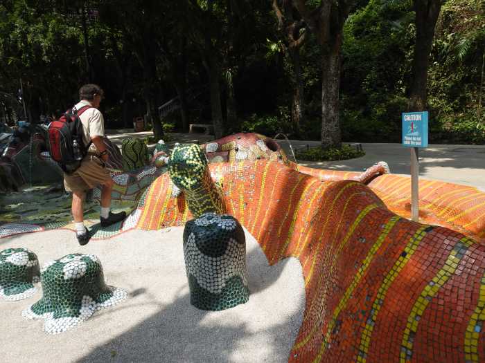 On the first day we were off to see Sentosa, an Island resort that caters for all ages with fun things to do. There are hotels on here so one can stay and enjoy all of the activities or just walk and enjoy the sunshine. The Singapore Lion has pride of place and the wonderful mosaic snake that winds down the road is a sight to see. Universal Studios is here as well but we ran out of time to visit. There are other animals depicted here and each one is full of colour and pretty lifelike too.