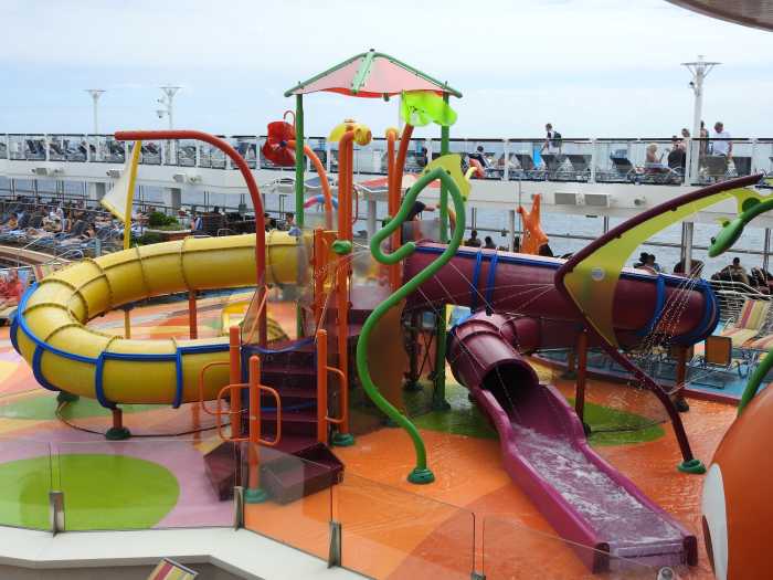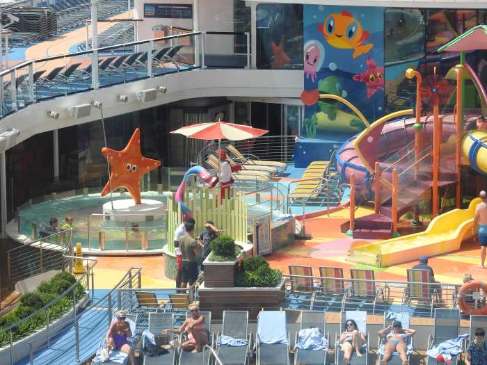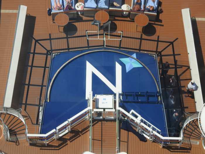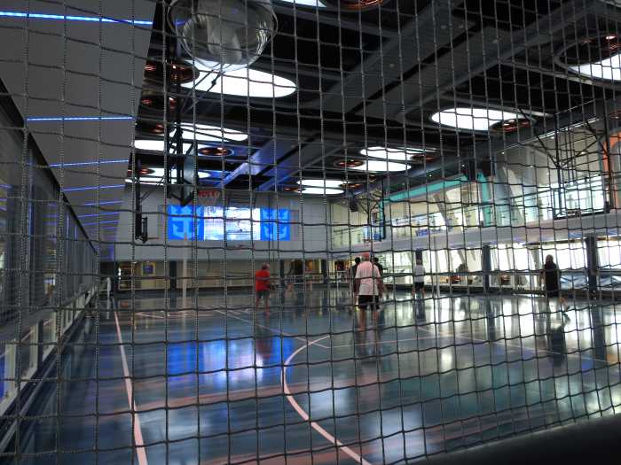 full size basketball court and large area for soccer and all sports. Table tennis is played up there and the Seaplex Dog House has the best hot dogs at sea.