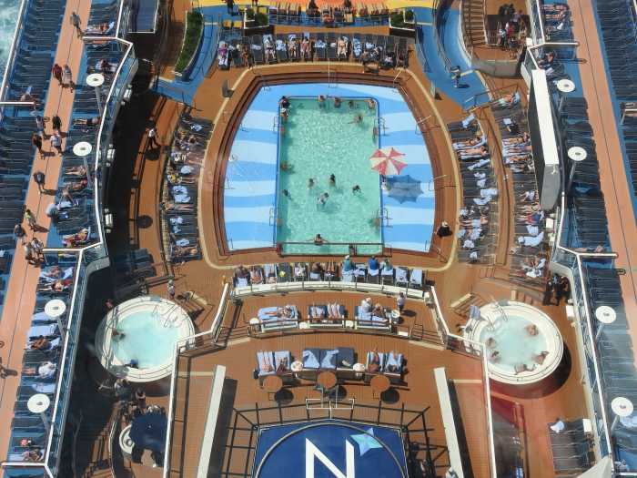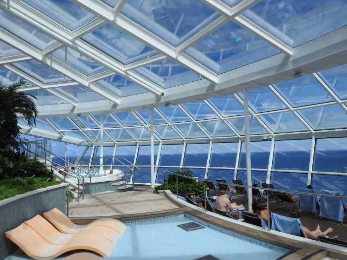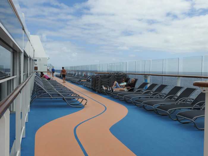 The ship walking or jogging track circumvents the ship and is very well used. The Solarium is at the back of the ship and has undercover spas and places just