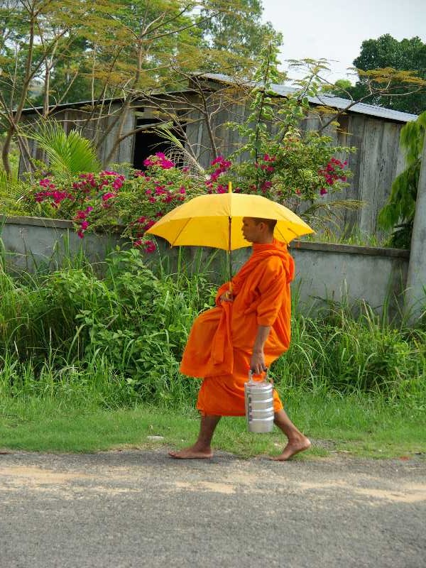 The monks were very friendly here and one was feeding a bird with some fruit. It ate without